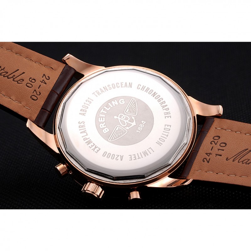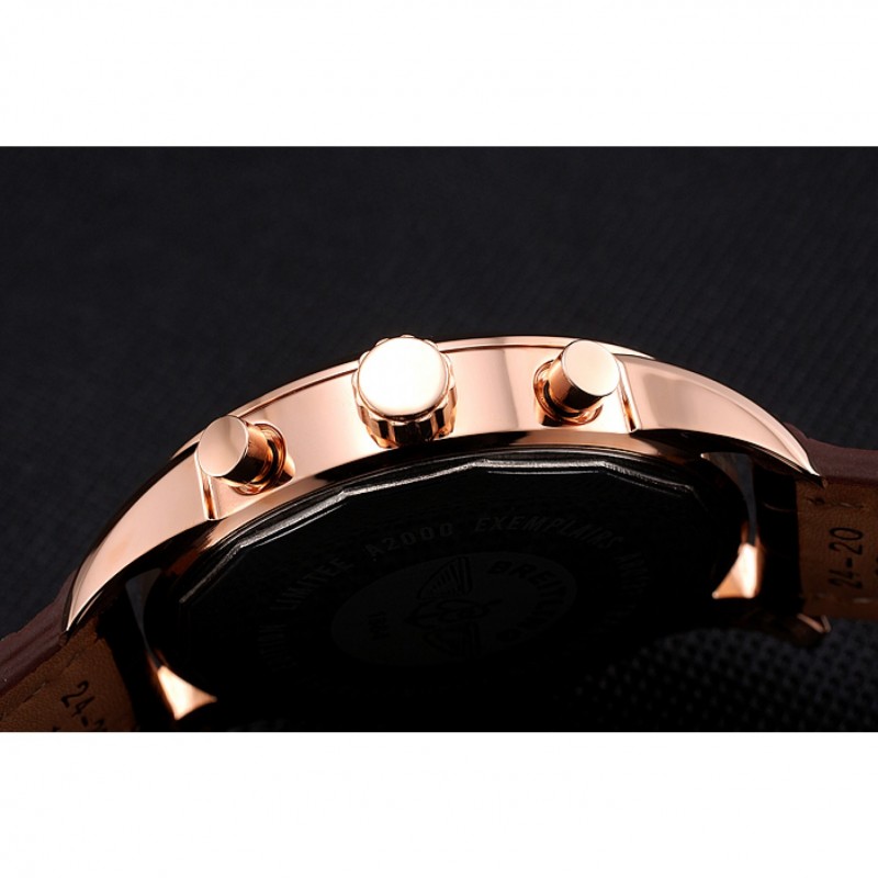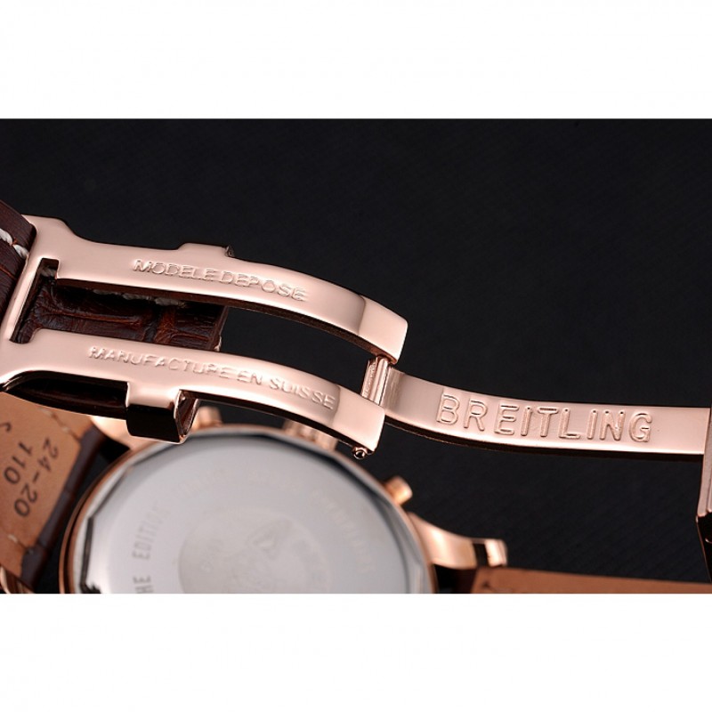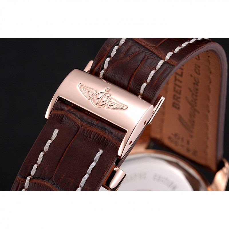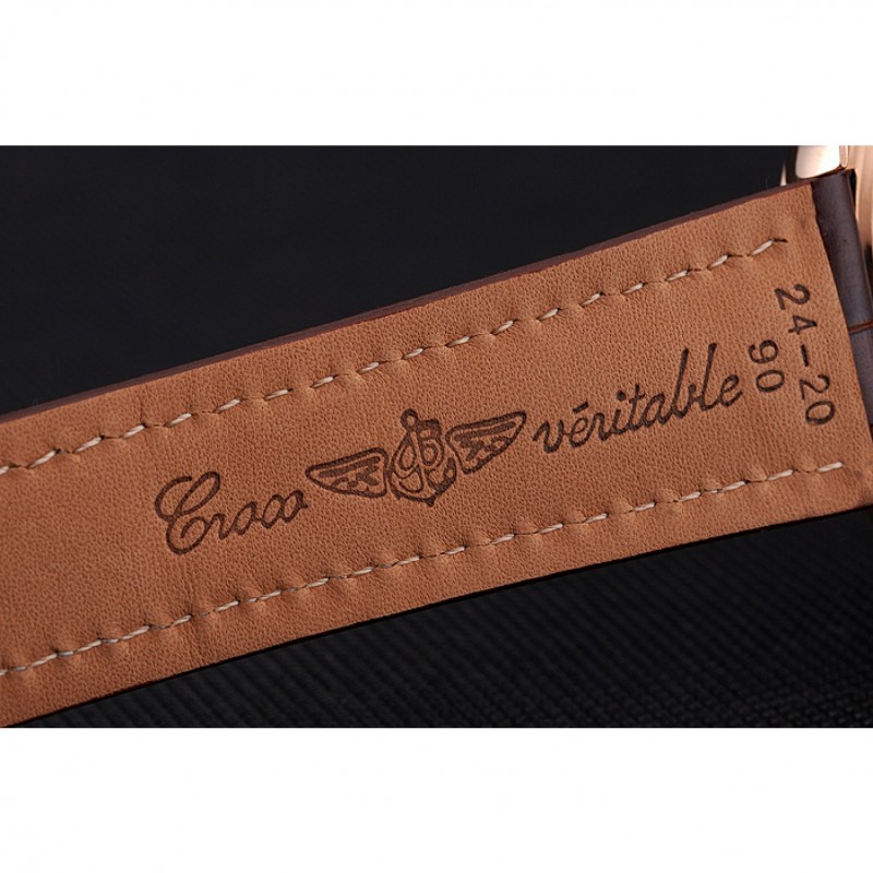 Bracelet:cuir Véritable chaleur bracelet en cuir de crocodile brun gaufré avec des coutures de fil blanc et Breitling logo 18k gravé rose plaqué or boucle déployante