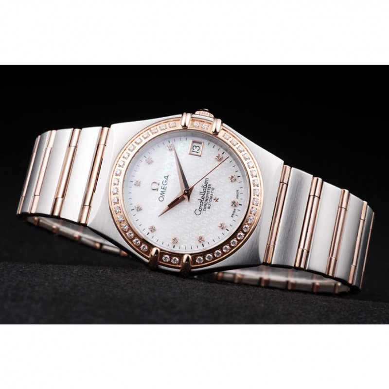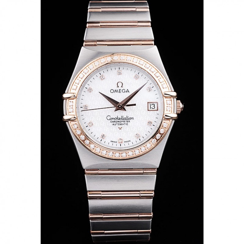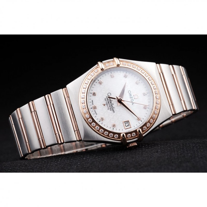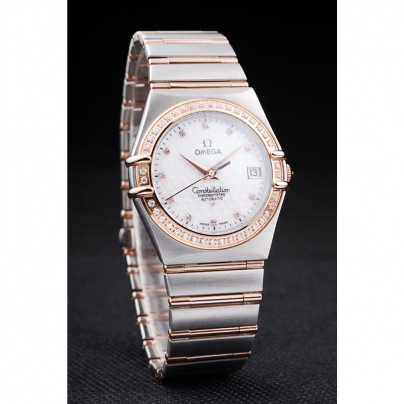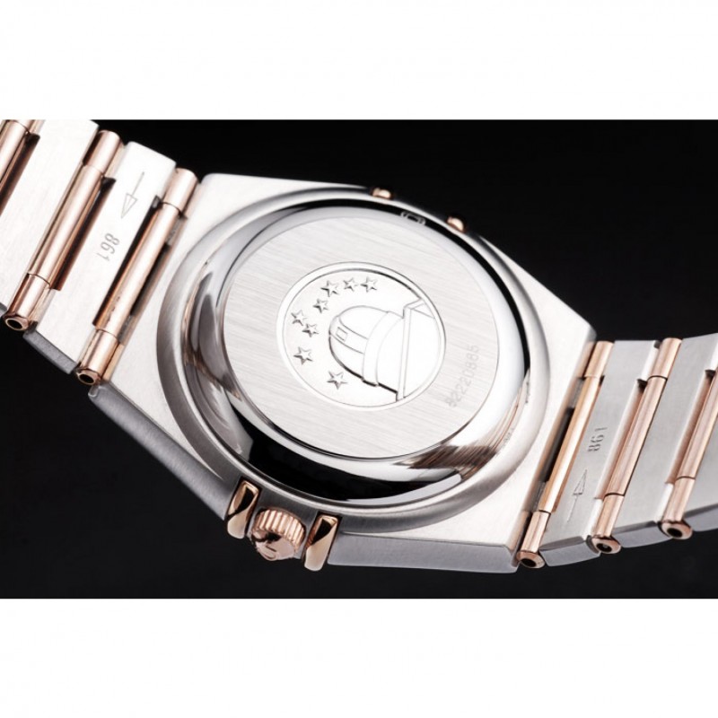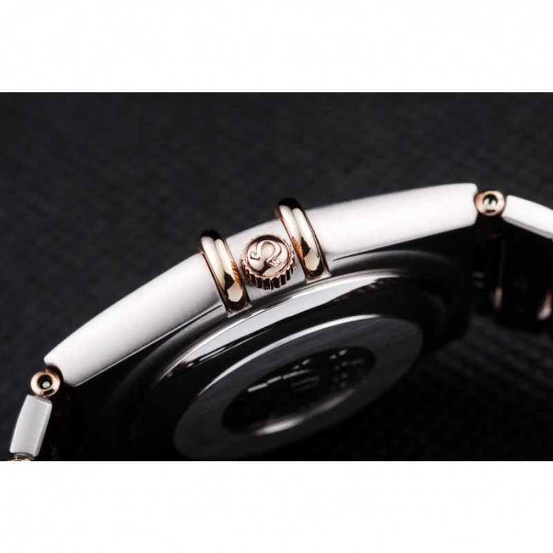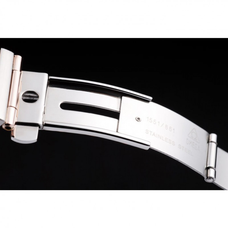 bracelet:brossé en acier inoxydable et bracelet à maillons chaîne rose d’or avec fermoir caché et logo Omega sur