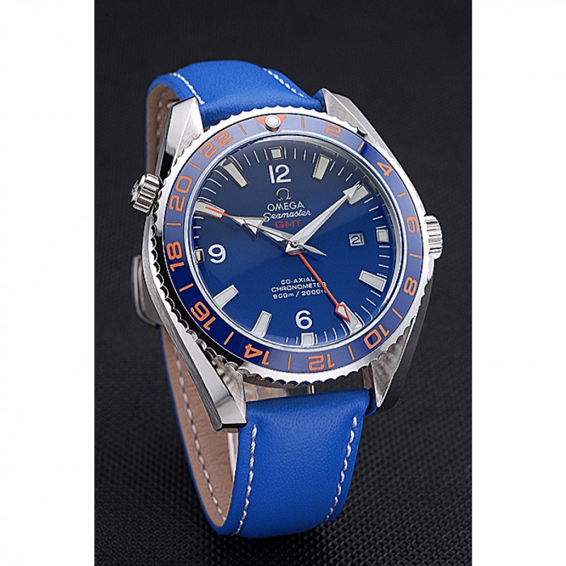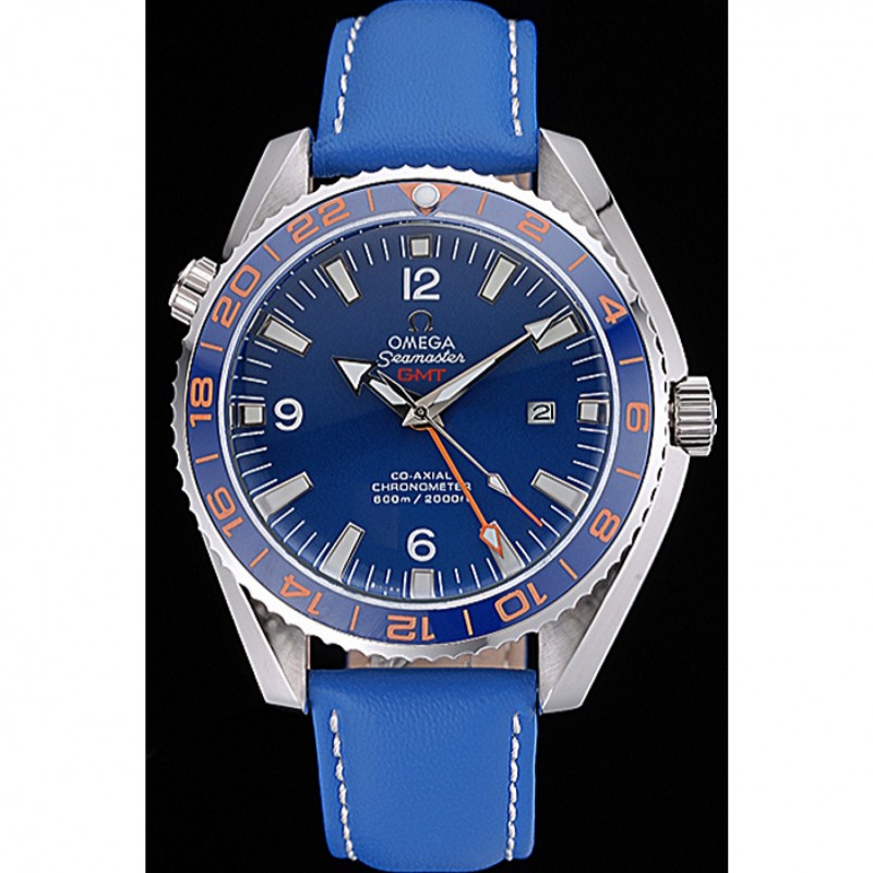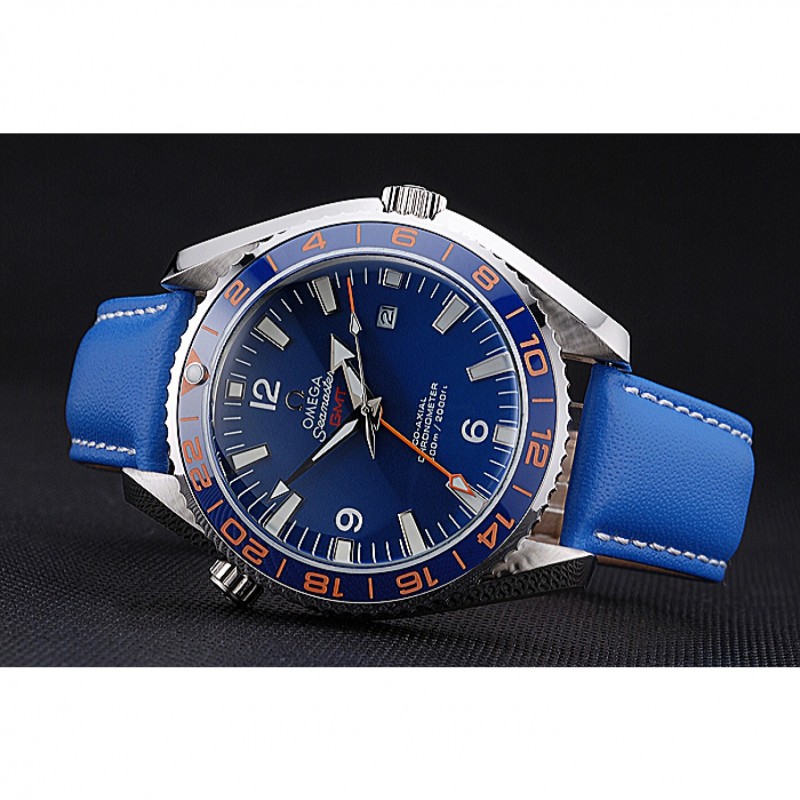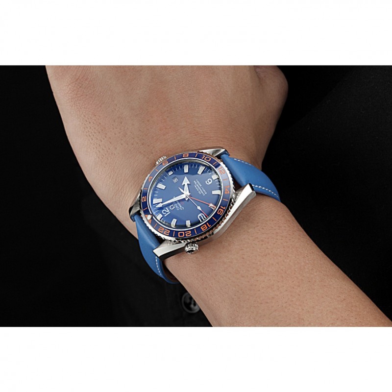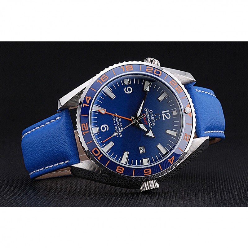 Haut Gamme Omega Seamaster Planet Ocean GMT cadran bleu bleu bracelet en cuir 622394