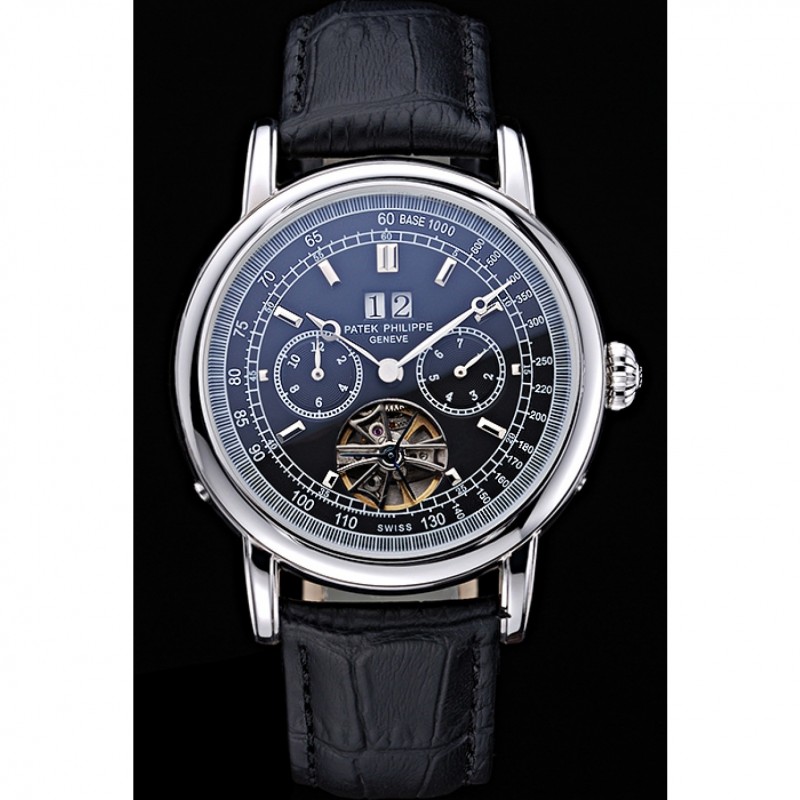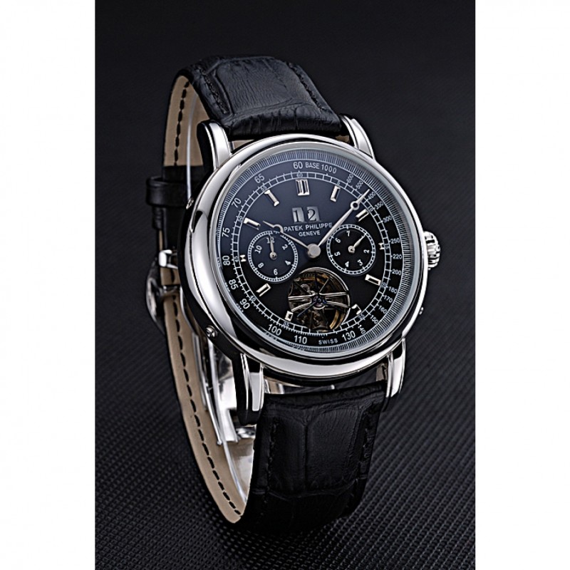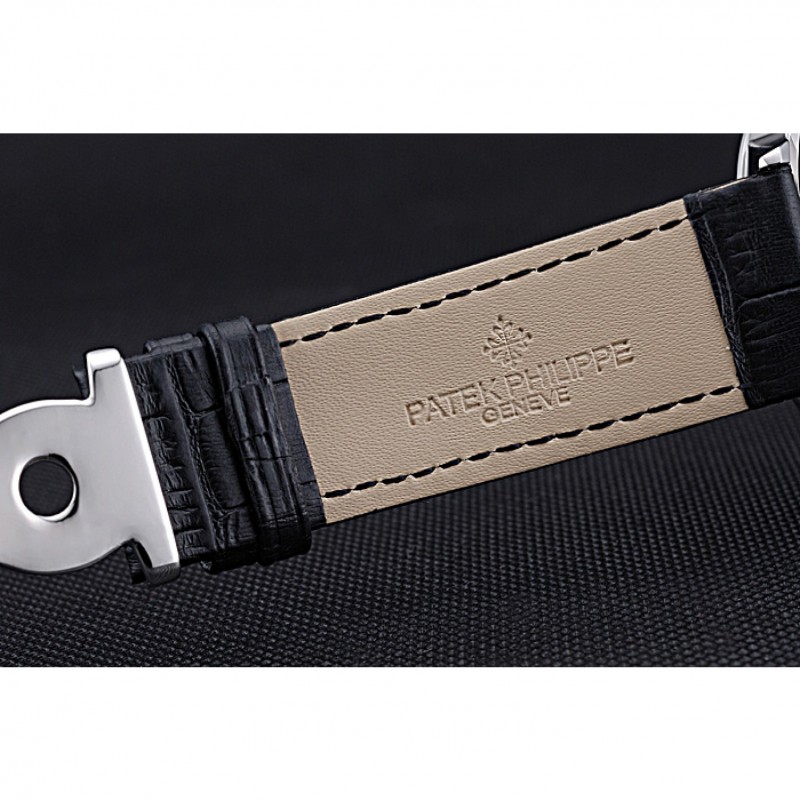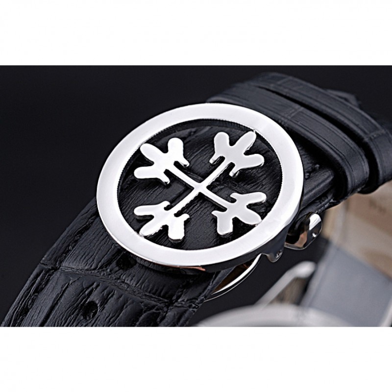 Bracelet:logo et Patek Philippe Geneve chaleur embossé bracelet en cuir de crocodile noir en acier inoxydable poli cutwork fermoir crochet logo
