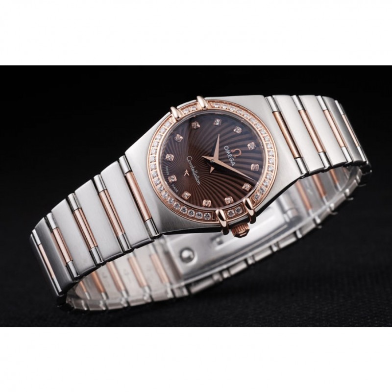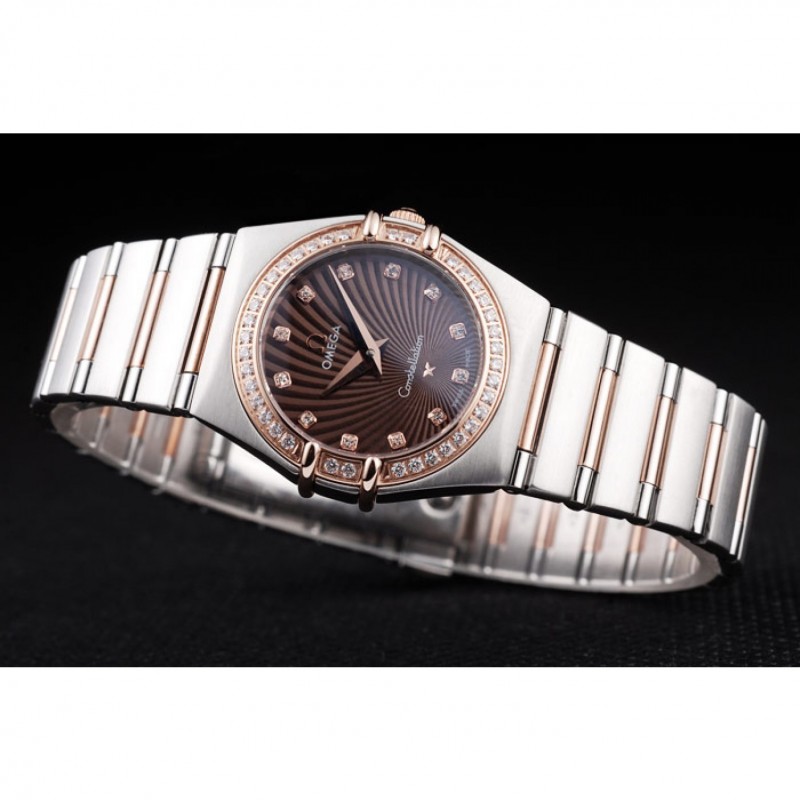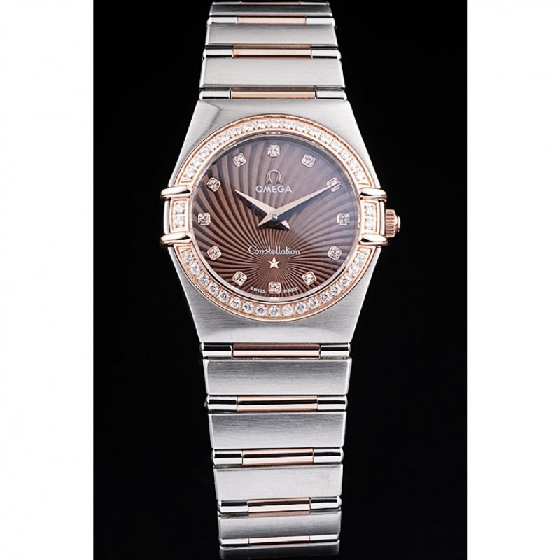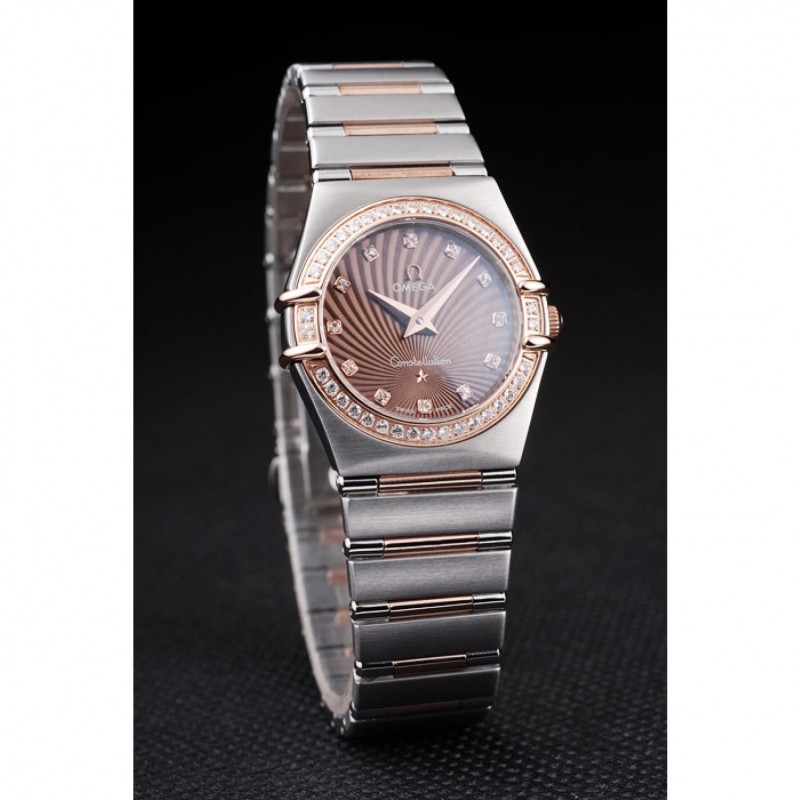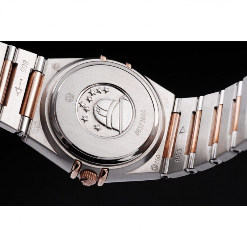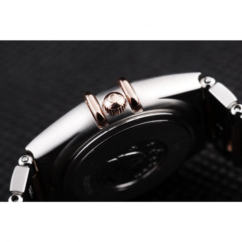 bracelet:brossé en acier inoxydable et bracelet à maillons chaîne rose d’or avec fermoir caché et logo Omega sur