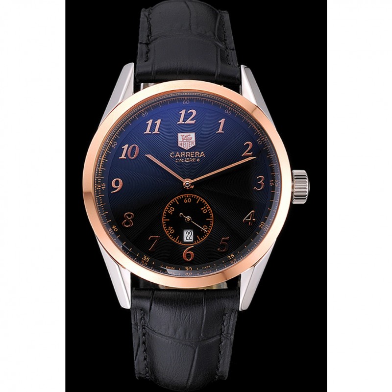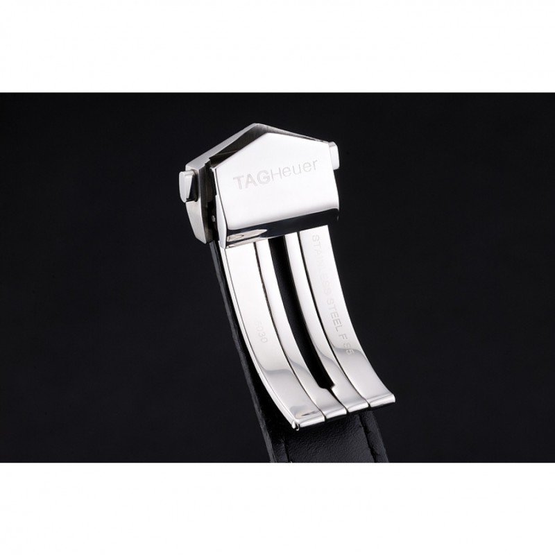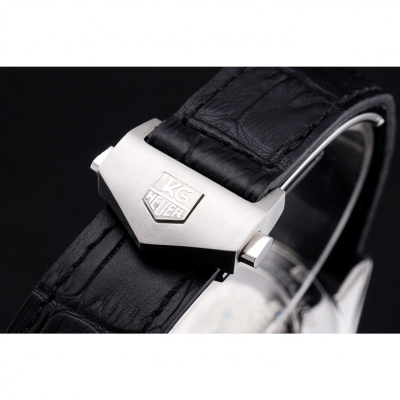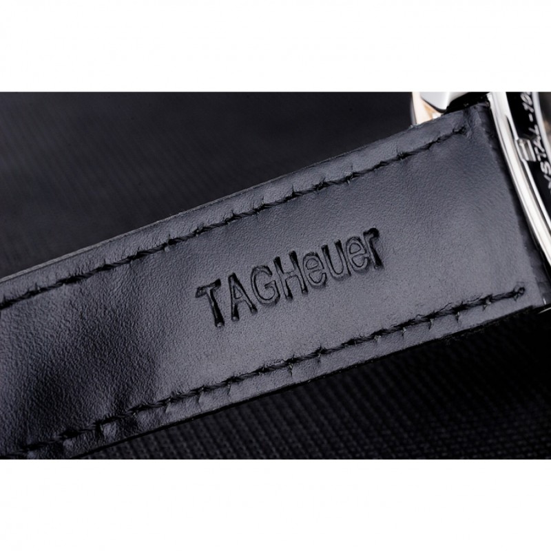 Bracelet:Tag Heuer bracelet en cuir de crocodile noir en relief de chaleur avec Tag Heuer gravé brossé mousqueton push-sortie en acier inoxydable