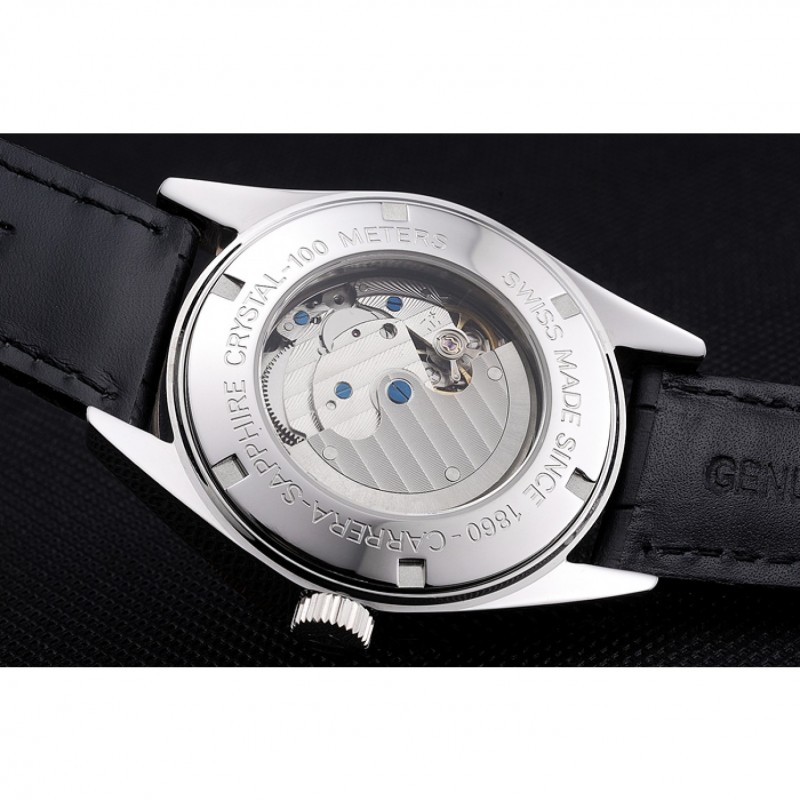 Retour:en acier inoxydable poli encliquetable à l’arrière avec la mécanique transparente révélant centre et Tag Heuer gravure