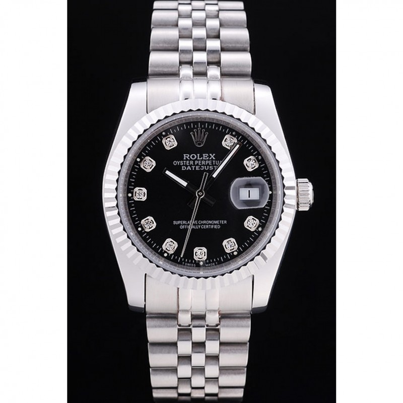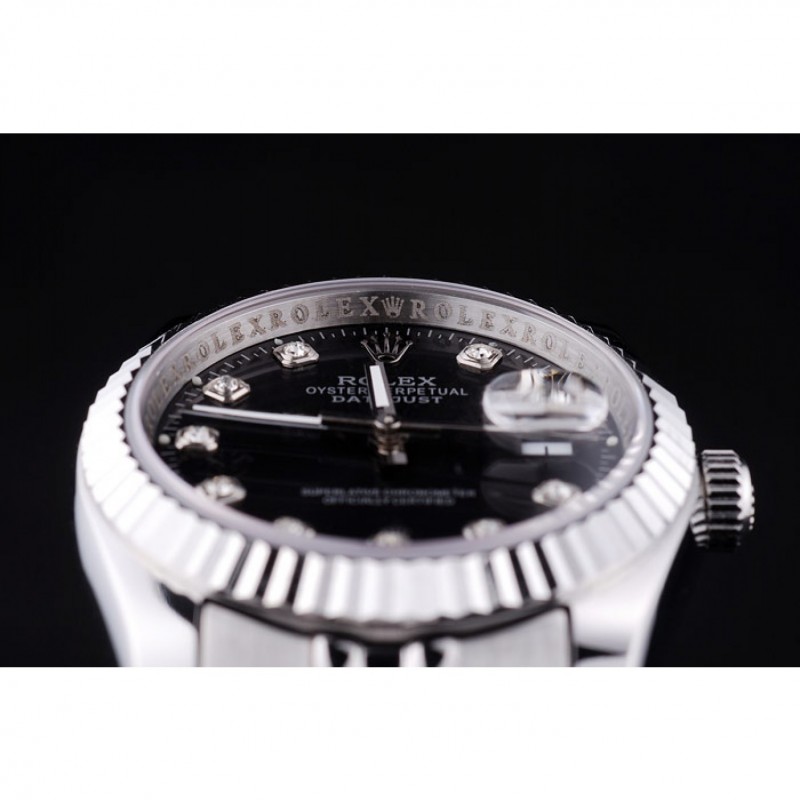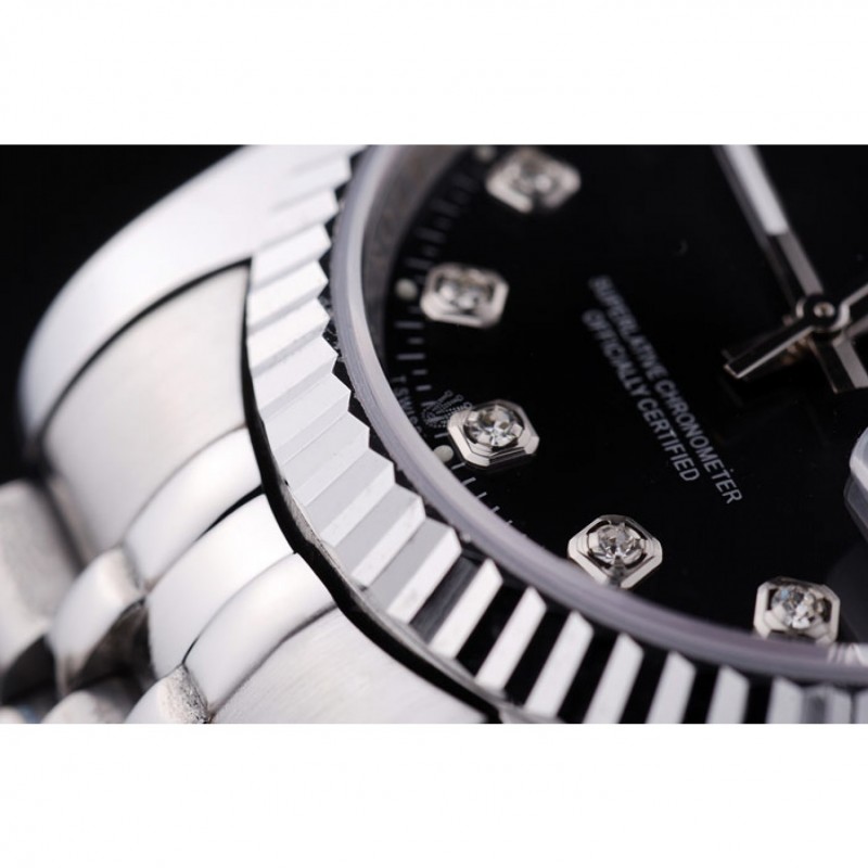 Haut Gamme Rolex Datejust Diamonds cadran noir côtelées Bezel 7458