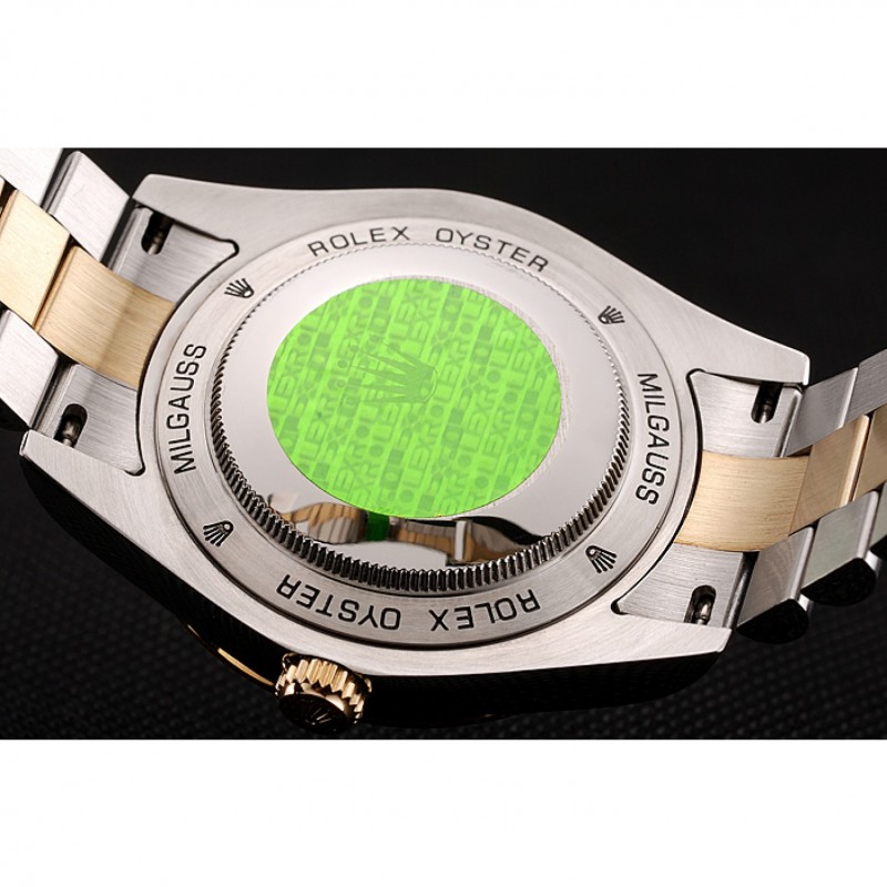 Retour:Rolex Oyster Milgauss grava inoxydable poli acier composant logiciel enfichable à l’arrière avec l’autocollant d’authenticité verte Rolex