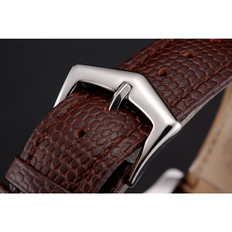 Bracelet:Logo et Patek Philippe chaleur gaufré brun bracelet en cuir de peau de serpent avec fermoir crochet-boucle en acier inoxydable poli
