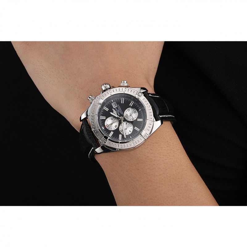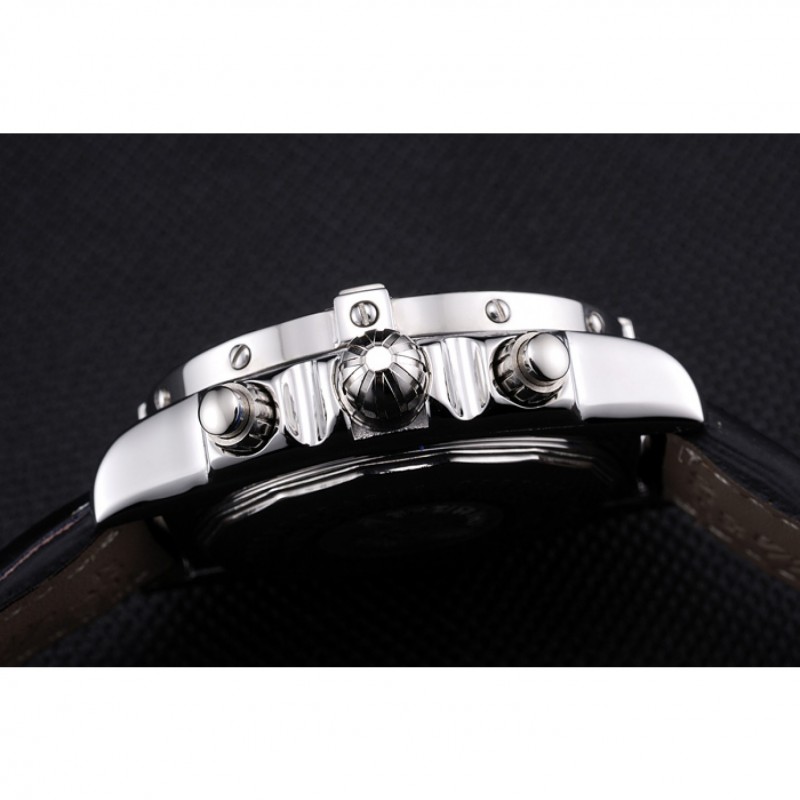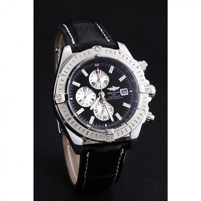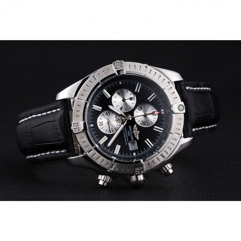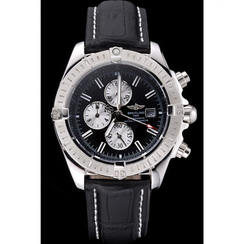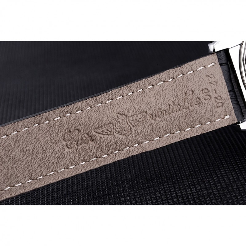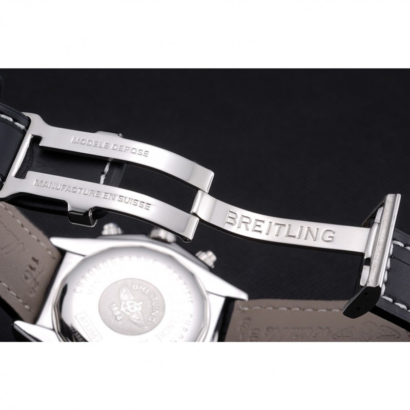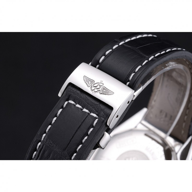 Bracelet:Breitling Fabrication en Suisse et logo chaleur en relief bracelet en cuir crocodile noir avec coutures fil blanc et logo pli en boucle en acier inoxydable poli gravée