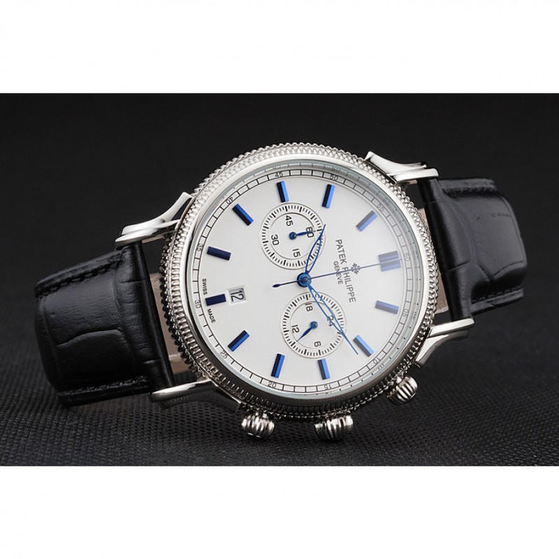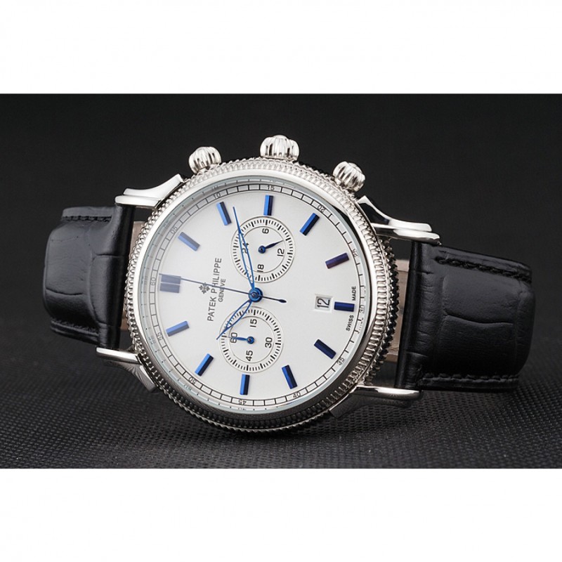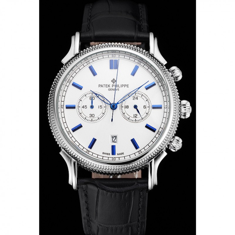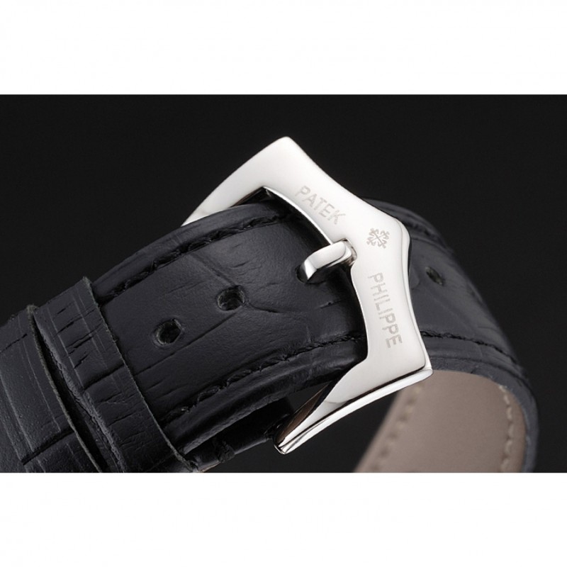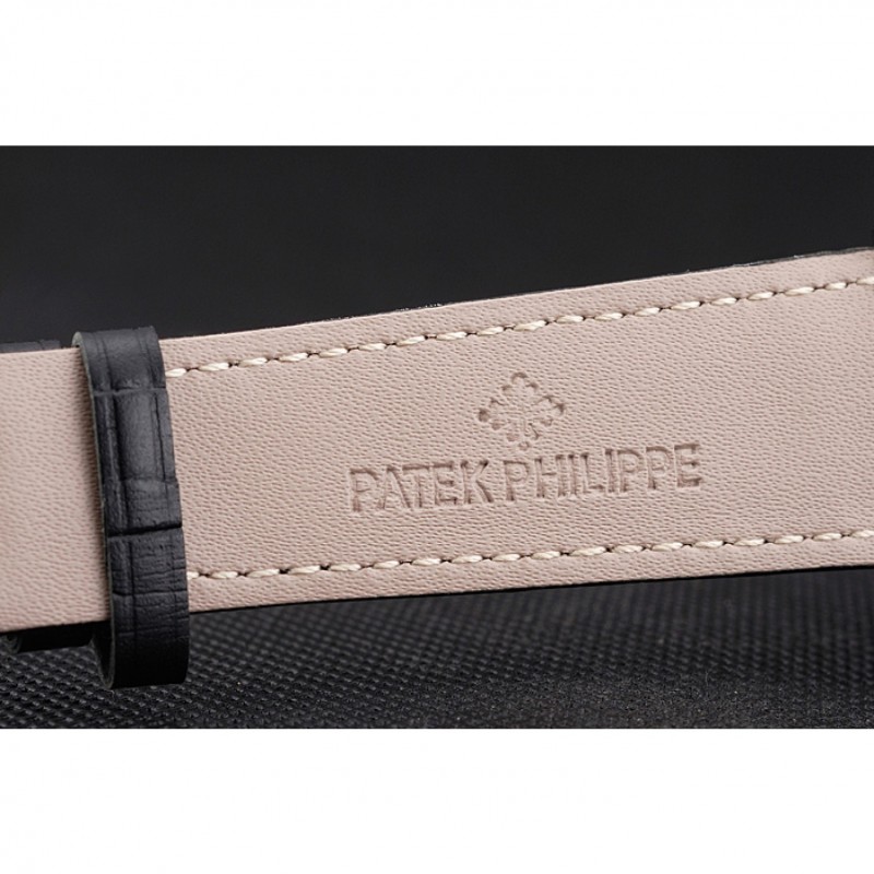 Bracelet:logo et Patek Philippe chaleur en relief bracelet en cuir crocodile noir avec logo et Patek Philippe gravé en acier inoxydable poli fermoir crochet-boucle