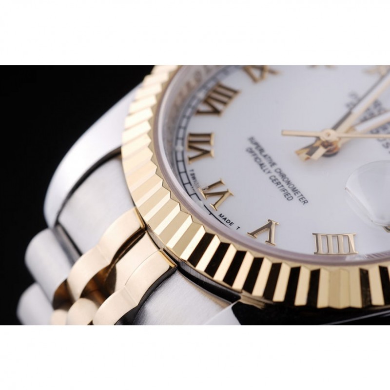 Je suis très satisfait de cette montre Rolex Datejust réplique. Le cadran blanc nervuré est élégant, et la lunette en or jaune 18k apporte une touche luxueuse. La qualité Miyota japonaise est remarquable pour le prix. Le bracelet bicolore acier inoxydable et or est confortable et solide. Parfait pour un usage quotidien, mais attention à ne pas l’immerger dans l’eau. Très bon achat !