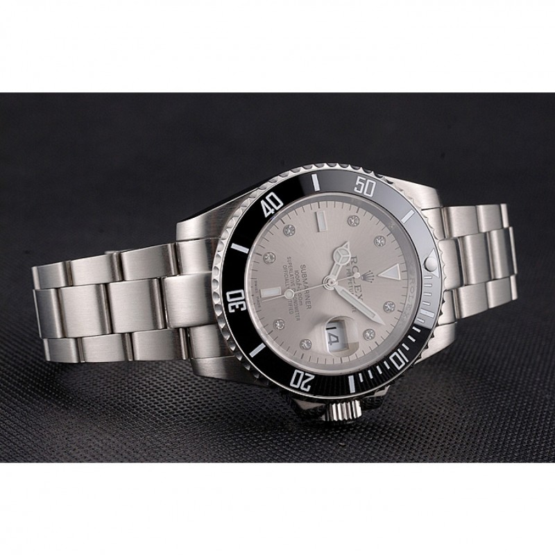 Haute qualité Replique Montre Swiss Rolex Submariner Cadran Argent Diamant Noir Lunette Marquages ​​inoxydable Boîtier et bracelet acier