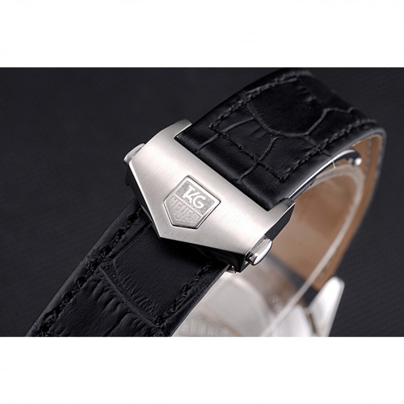Bracelet:Tag Heuer chaleur en relief bracelet en cuir crocodile noir avec Tag Heuer gravé en acier inoxydable brossé push-libération de pliage en boucle