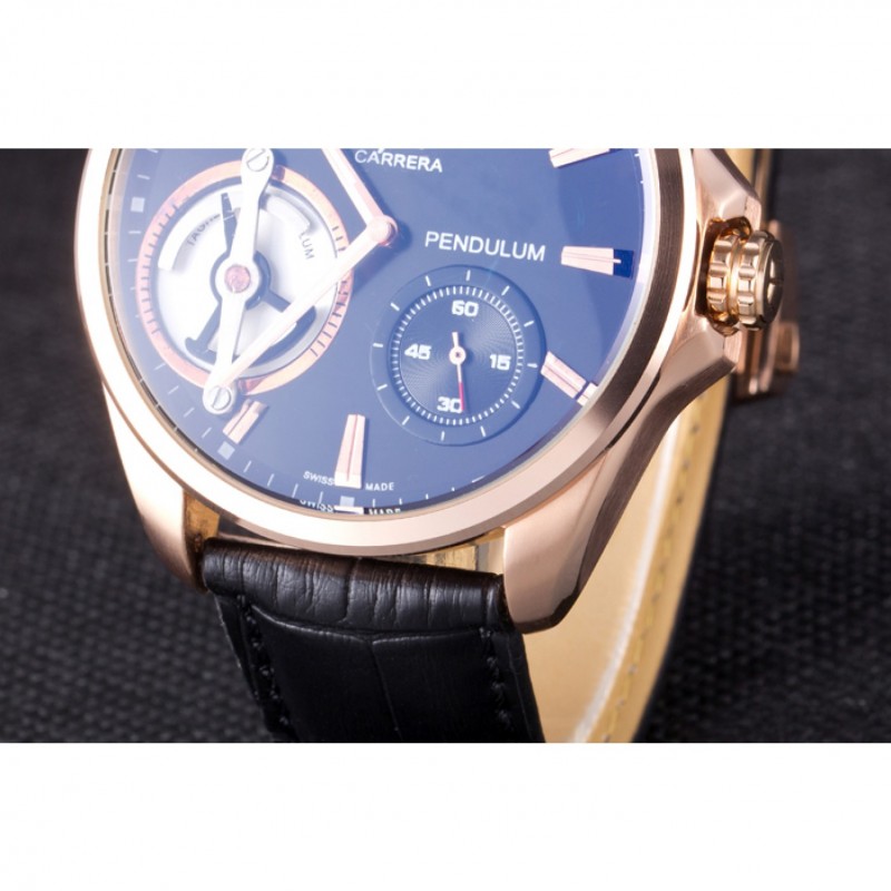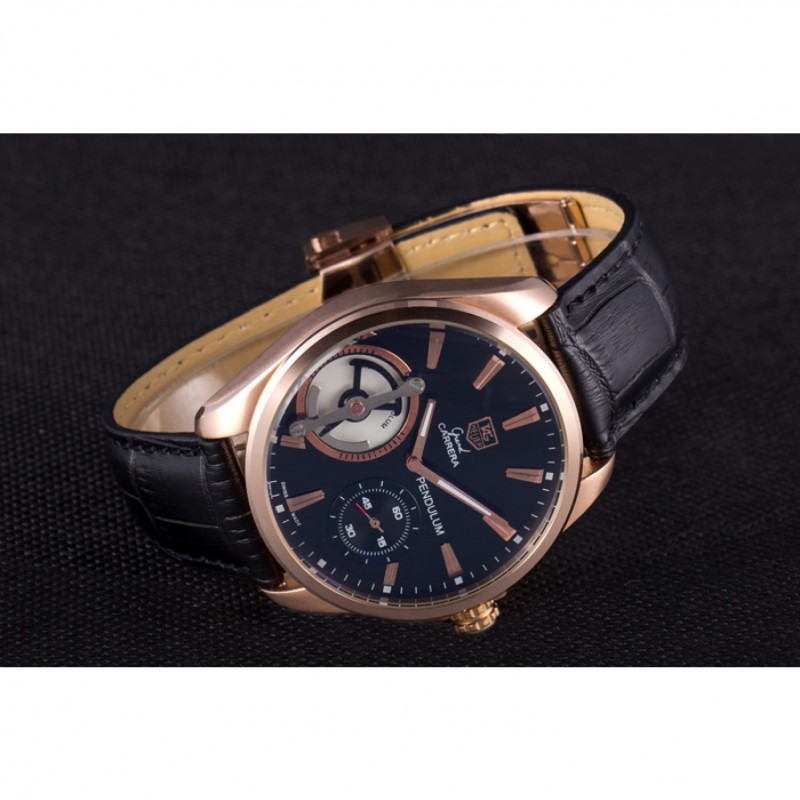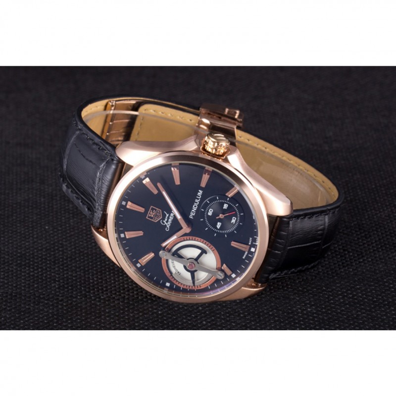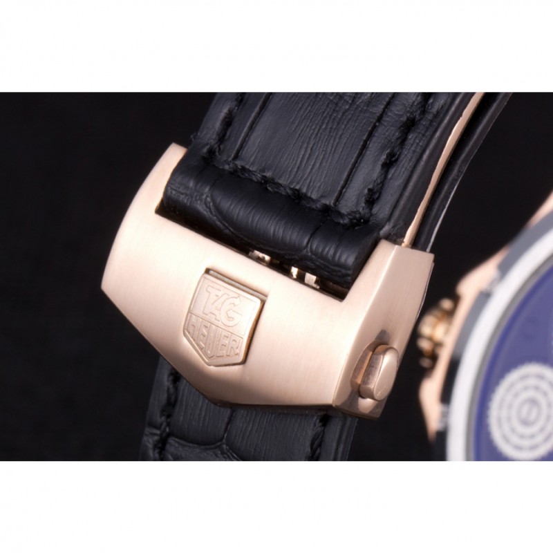 Bracelet:Heat relief Tag Heuer bracelet en cuir de crocodile noir avec 18k or rose plaqué fois en boucle avec fonction de sortie push