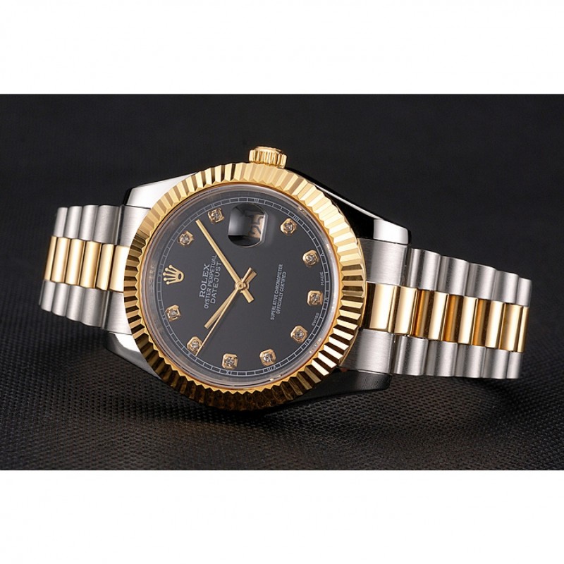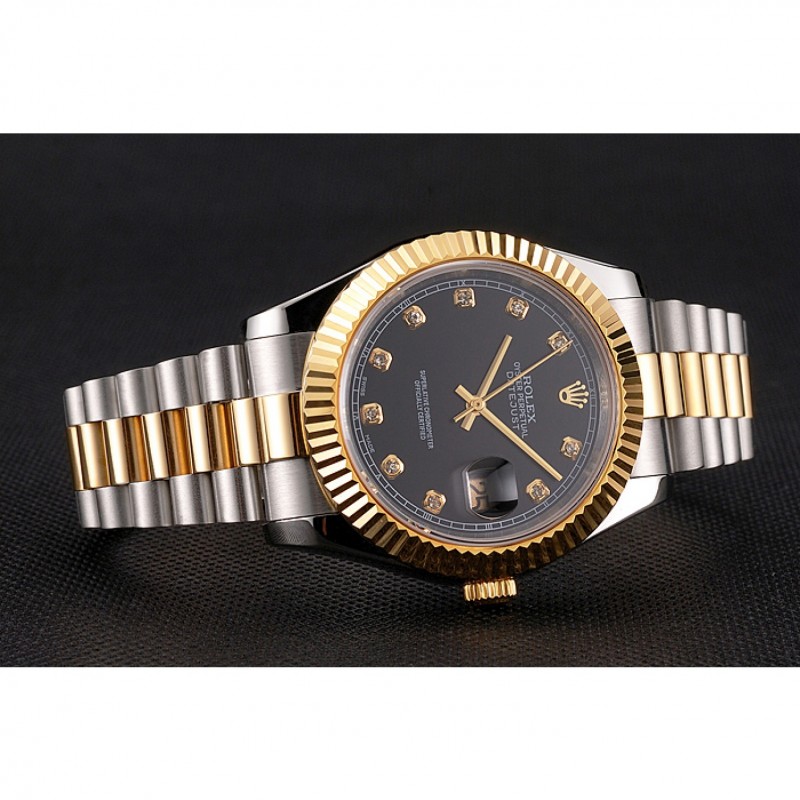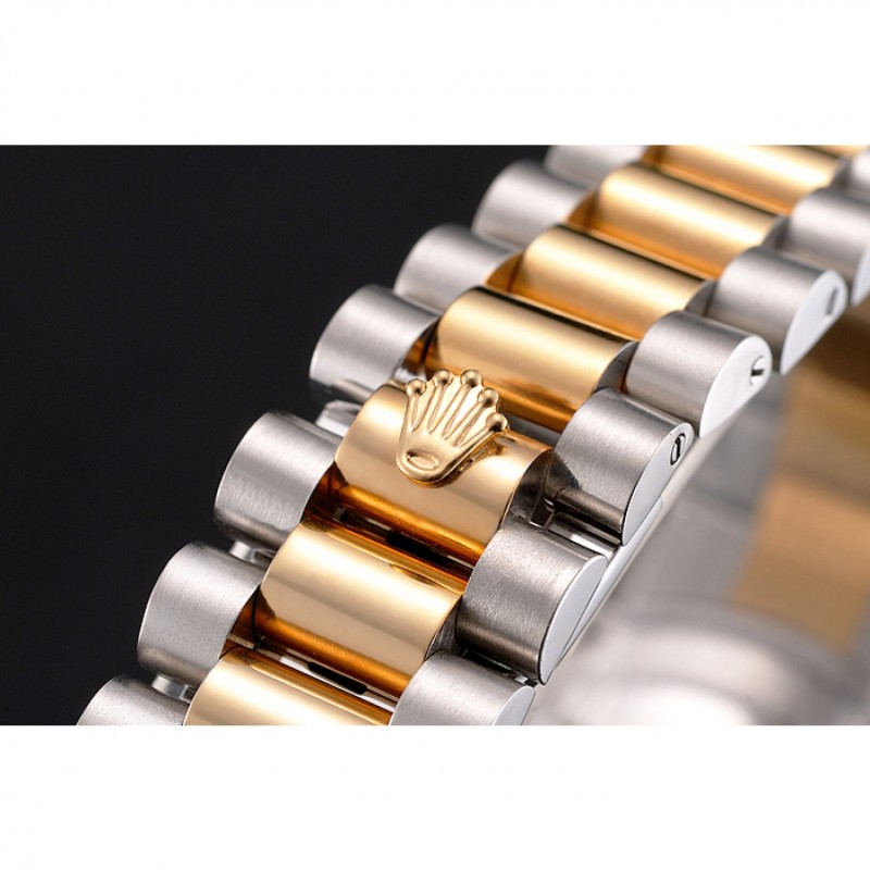 Bracelet:en acier inoxydable brossé et or jaune 18 carats bracelet lien plaqué or avec le logo Rolex gravé fois en boucle caché