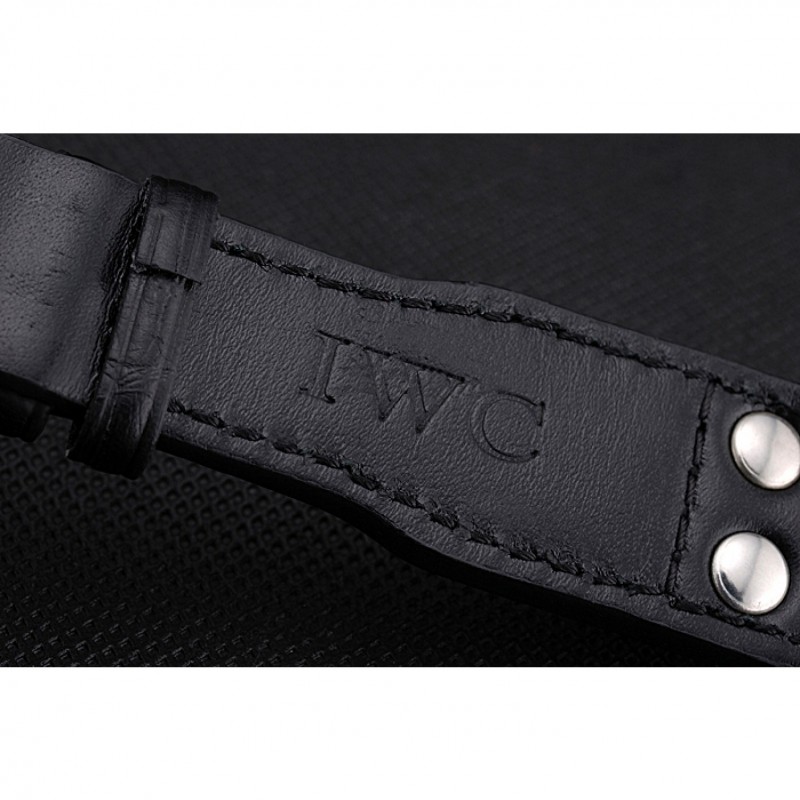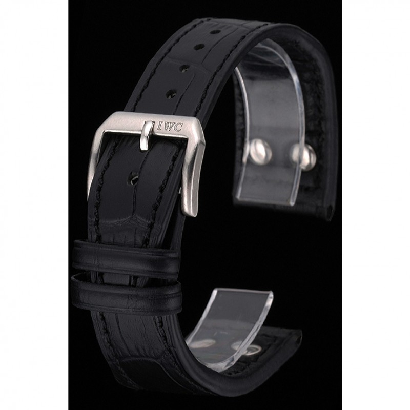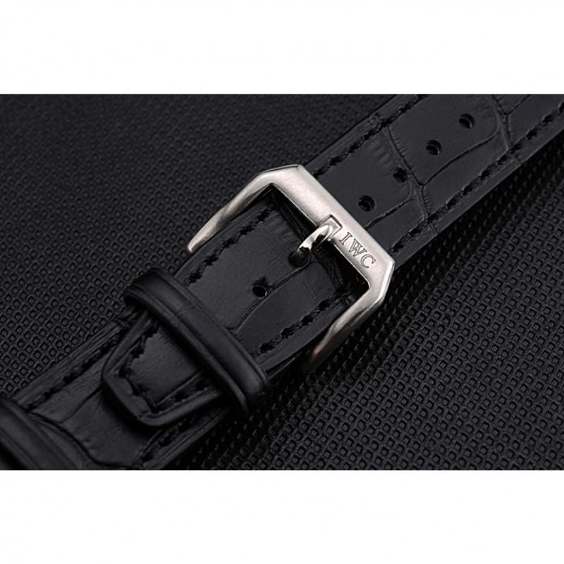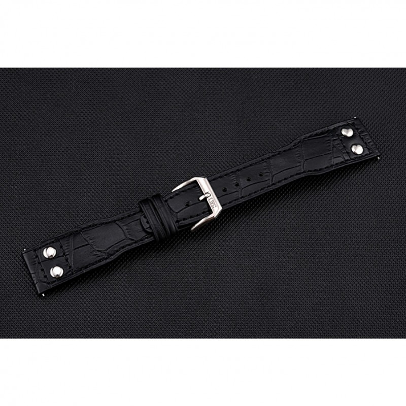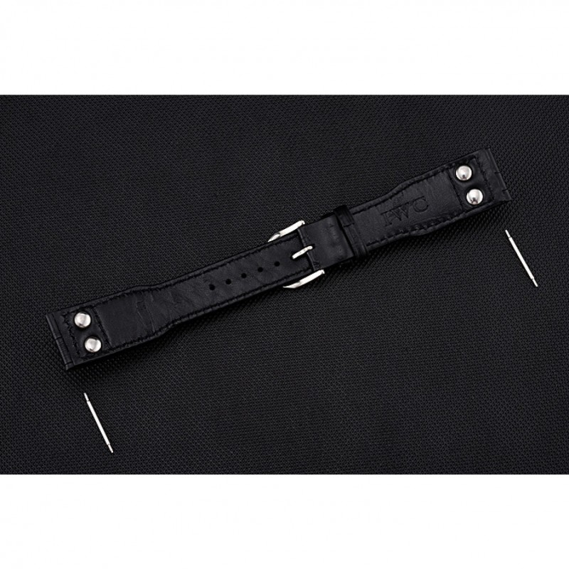 Bracelet:chaleur IWC bracelet en cuir crocodile noir en relief avec IWC gravé fermoir crochet-boucle en acier inoxydable poli