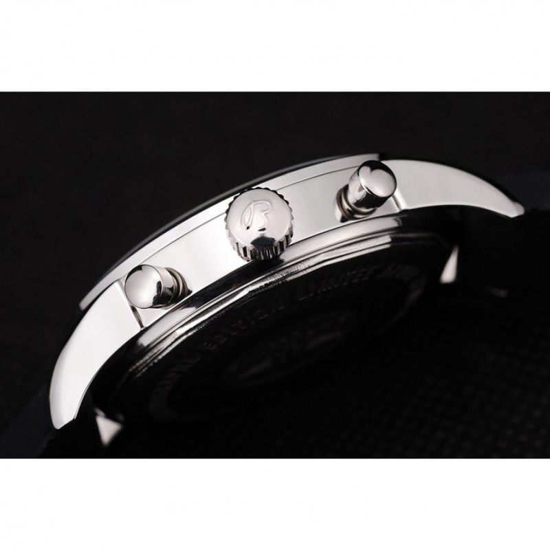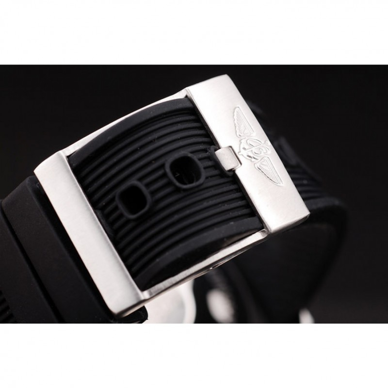 Bracelet:sangle en caoutchouc noir avec logo Breitling gravé fermoir crochet-boucle en acier inoxydable