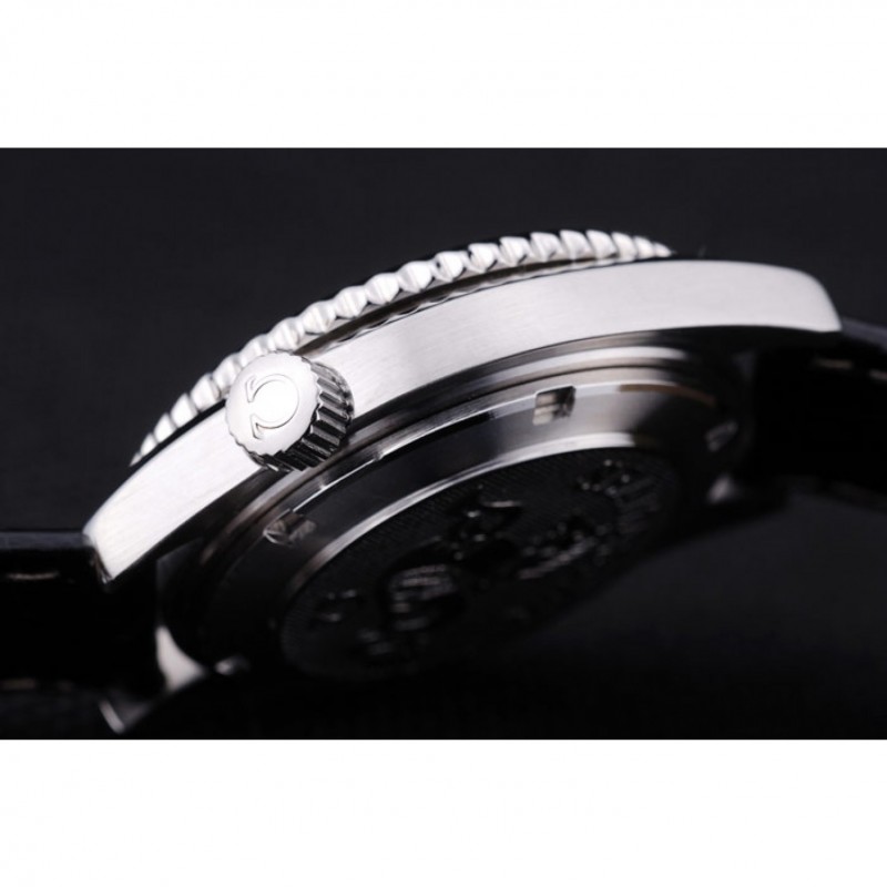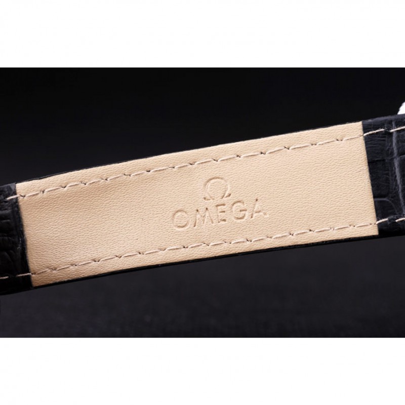 Bracelet:chaleur Omega bracelet en cuir de crocodile verni noir en relief avec Omega inscrit en acier inoxydable poli fermoir crochet boucle