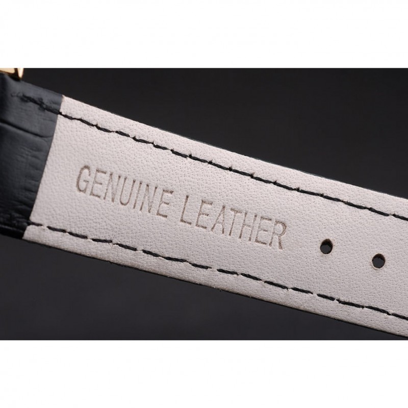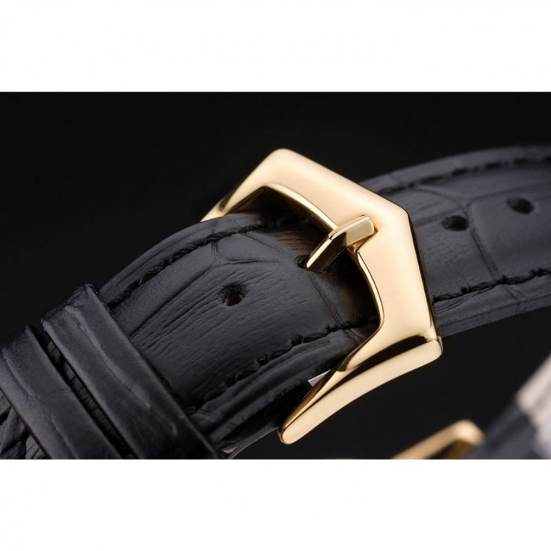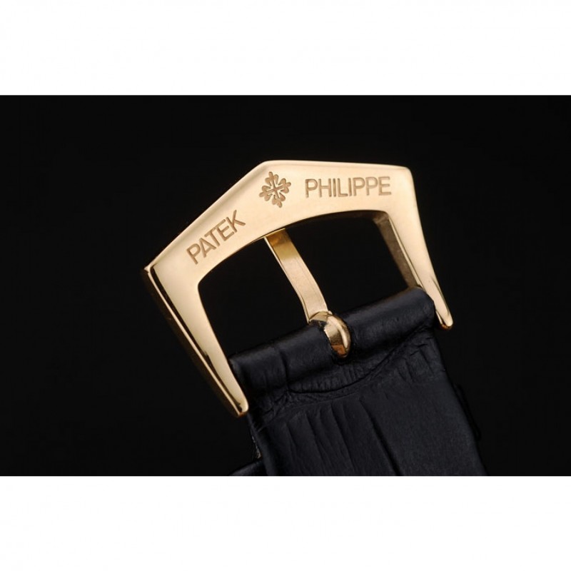 Bracelet:logo, Patek Philippe Geneve chaleur embossé bracelet en cuir de crocodile noir avec Patek Philippe et logo gravé or jaune 18 carats plaqué fermoir crochet boucle