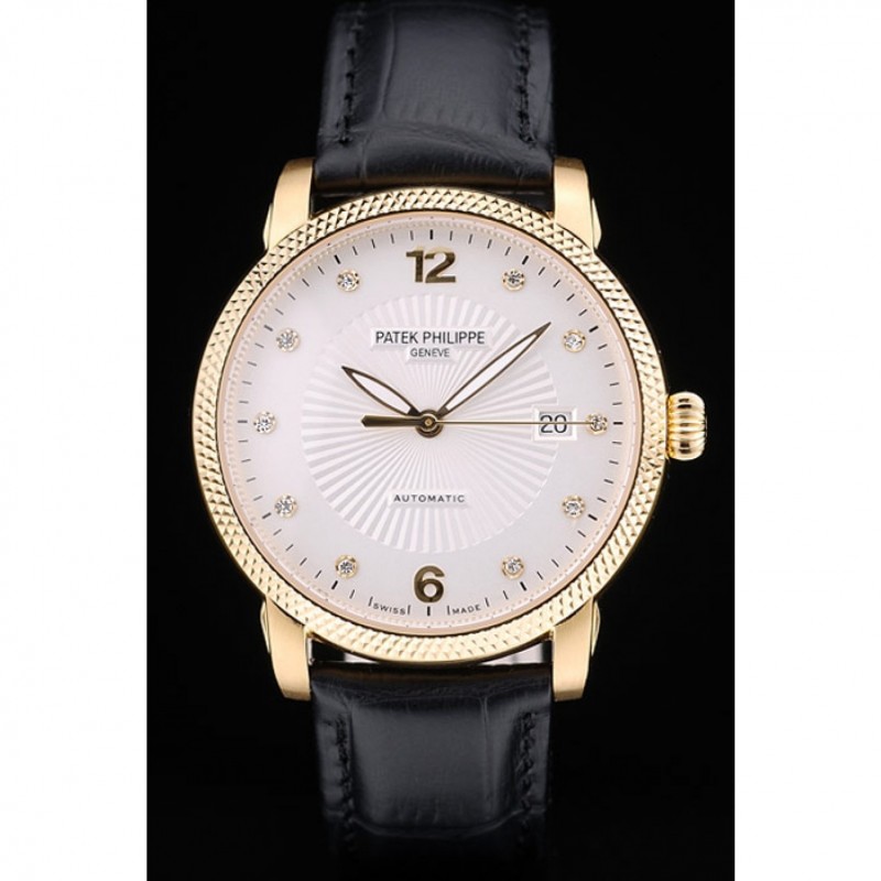 1 avis pour Luxe Replique Montre Patek Philippe Bezel nervuré suisse Calatrava cadran blanc bracelet en cuir noir 7642