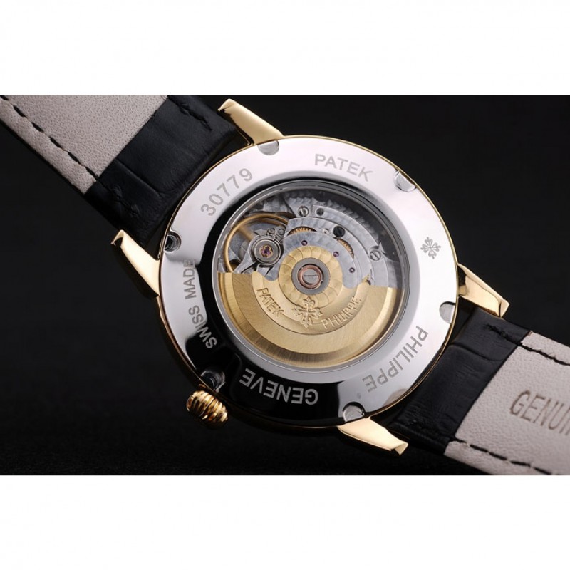 Retour:acier inoxydable poli acier enfichable à l’arrière avec la mécanique transparentes révélant centre et gravures Patek Philippe