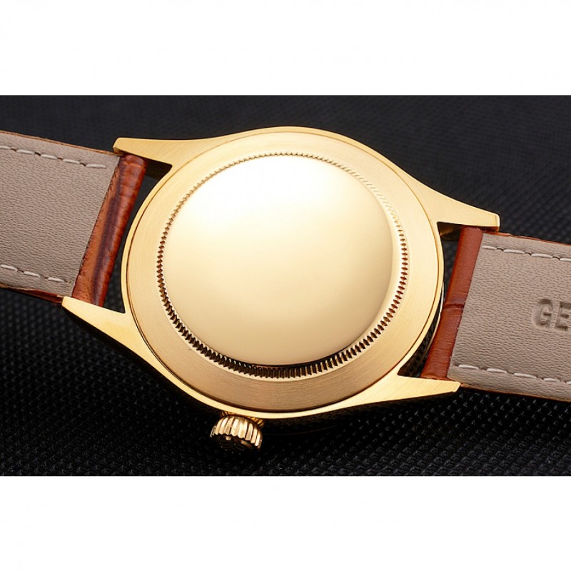 Bracelet:Rolex et logo chaleur embossé bracelet en cuir de crocodile brun clair avec logo Rolex gravé or jaune 18 carats plaqué fermoir crochet boucle