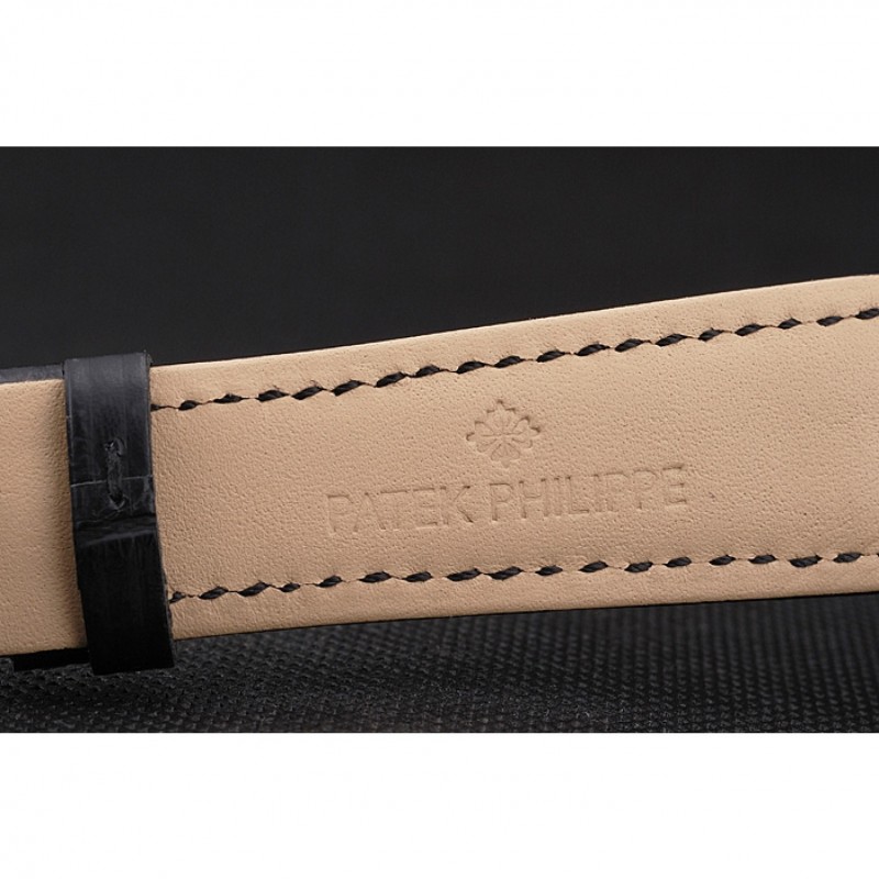Bracelet:logo et Patek Philippe chaleur bracelet en cuir crocodile noir gravé Patek Philippe logo gravé fermoir crochet-boucle de placage ionique