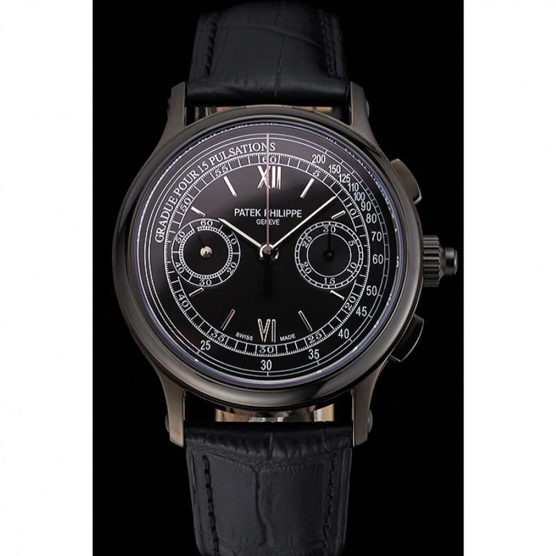 Luxe Suisse Patek Philippe 5170J Chronographe Cadran Noir boîtier noir Bracelet en cuir noir