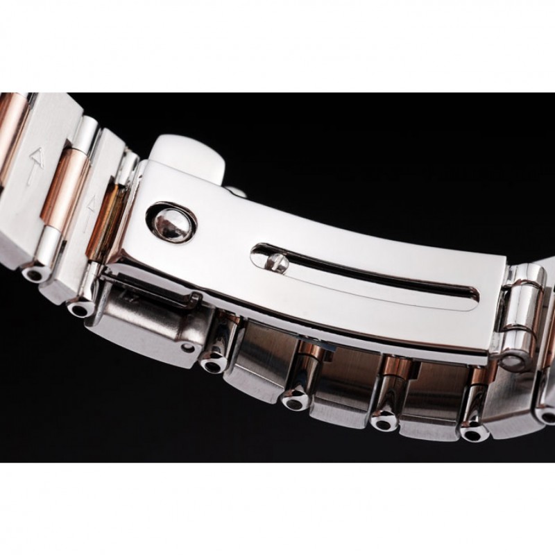 Bezel:lunette en or rose avec index des chiffres romains noirs