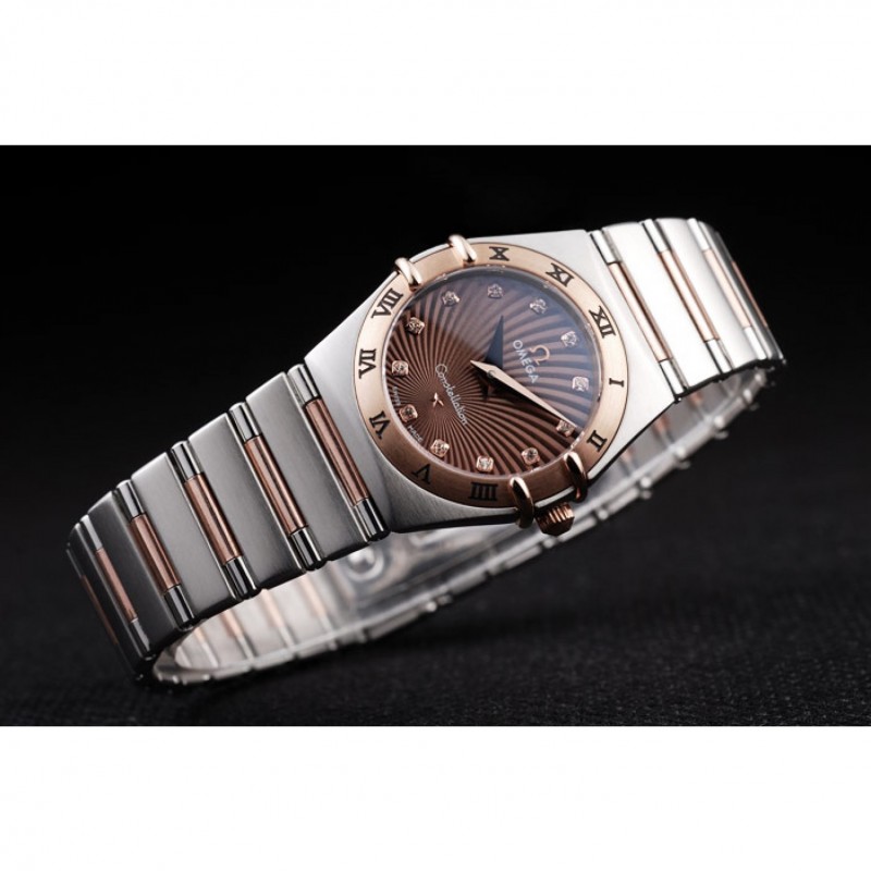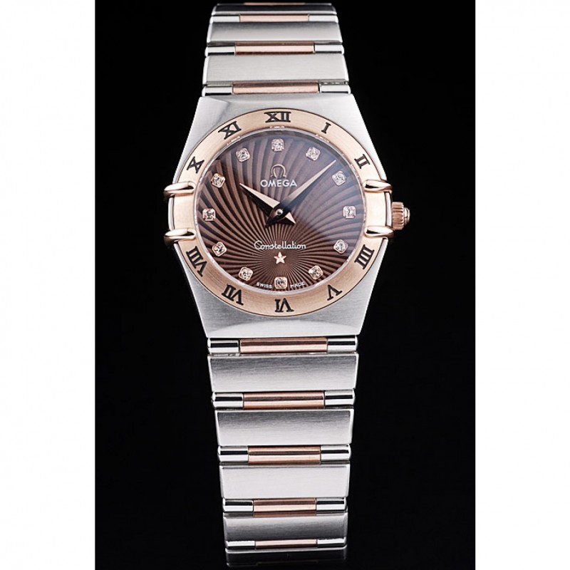 Bracelet:brossé en acier inoxydable et Rose- bracelet chaîne à maillons en or avec fermoir caché et logo Omega sur