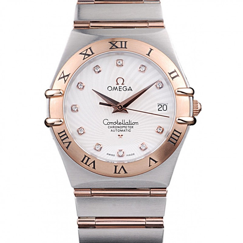 Couronne:18k or rose couronne cutwork avec le logo Omega