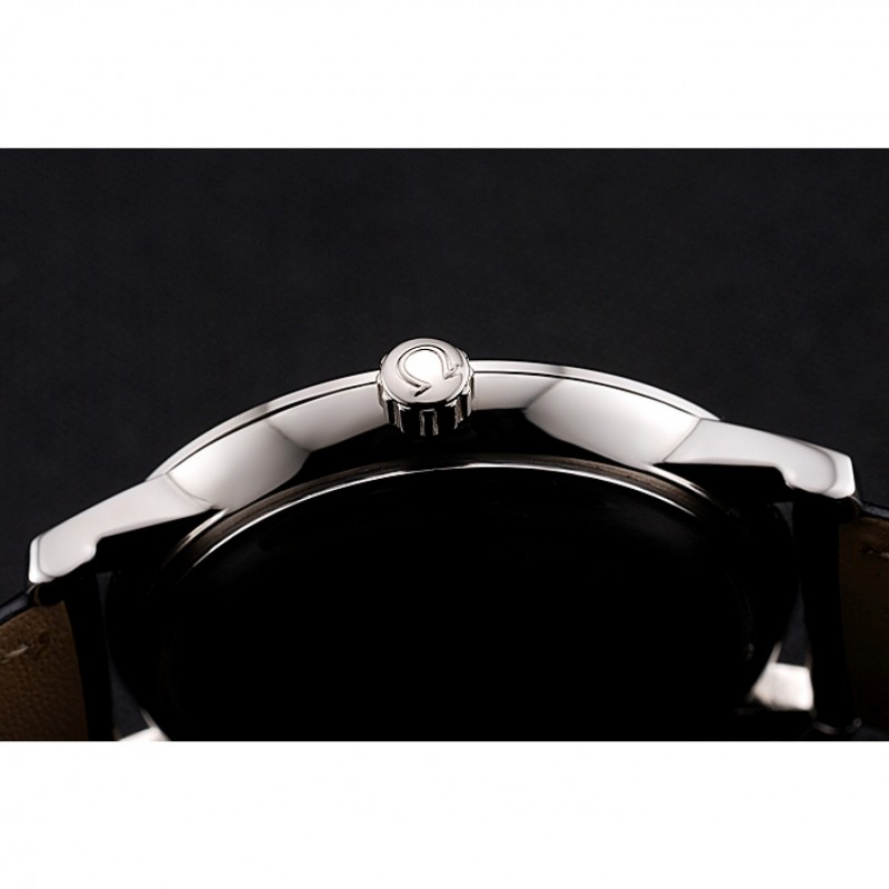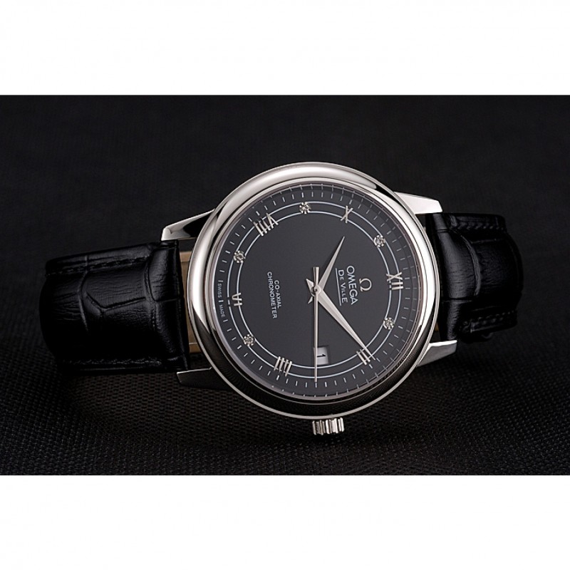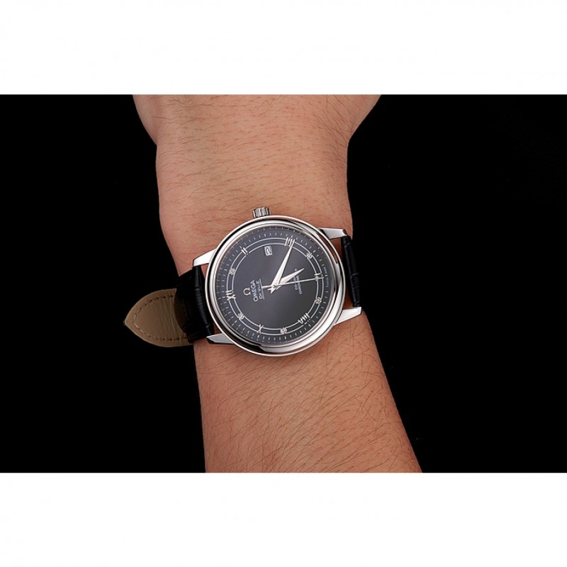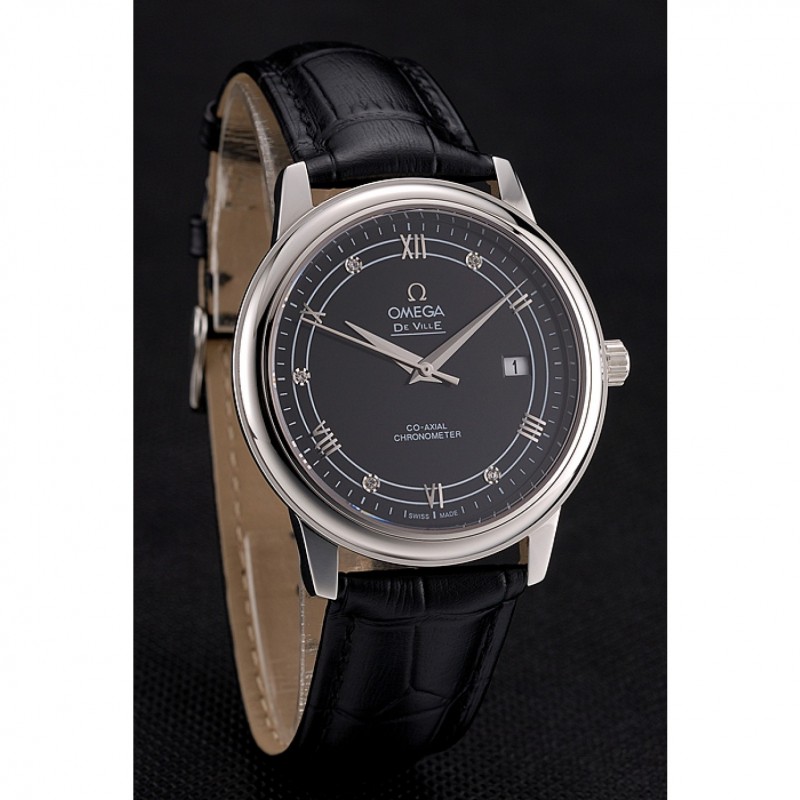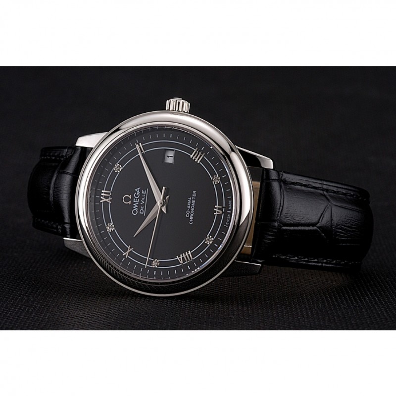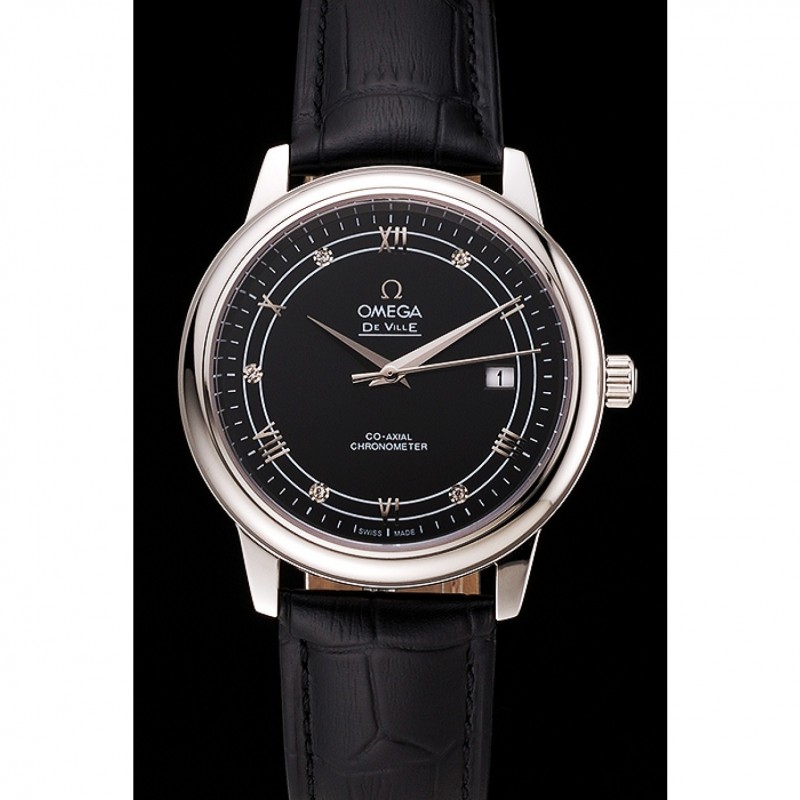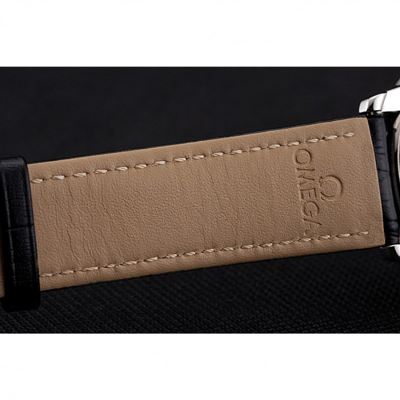 Omega De Ville Prestige cadran noir Boîtier en acier inoxydable Bracelet en cuir noir