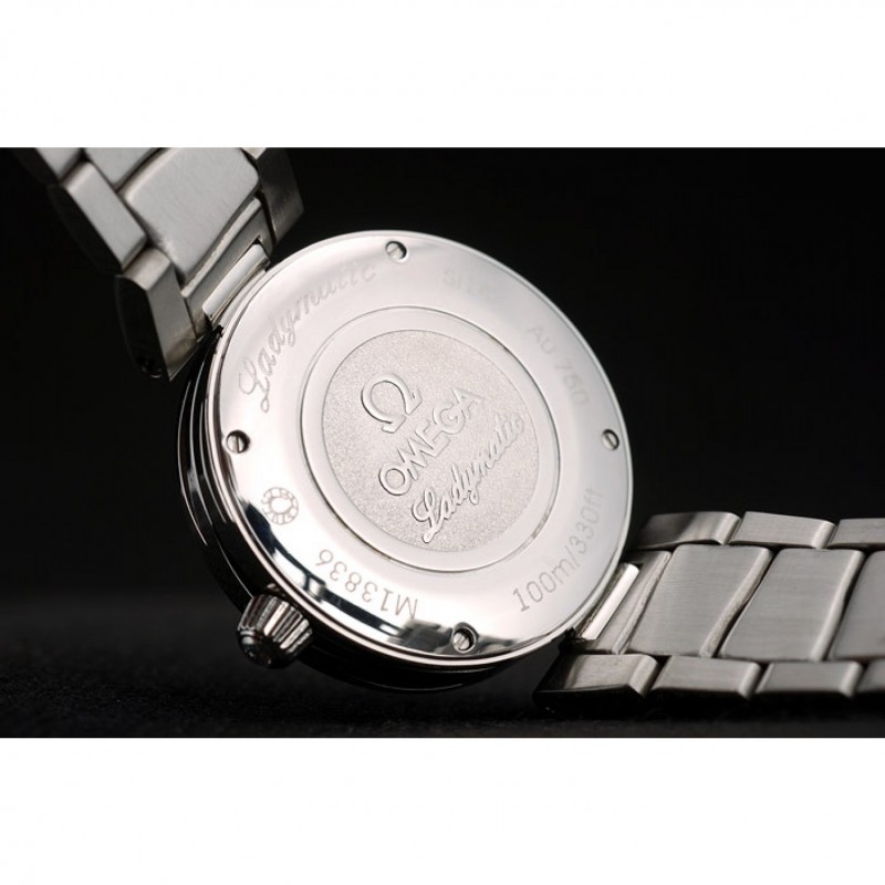 Retour:acier inoxydable poli vissé arrière avec gravure Omega Ladymatic