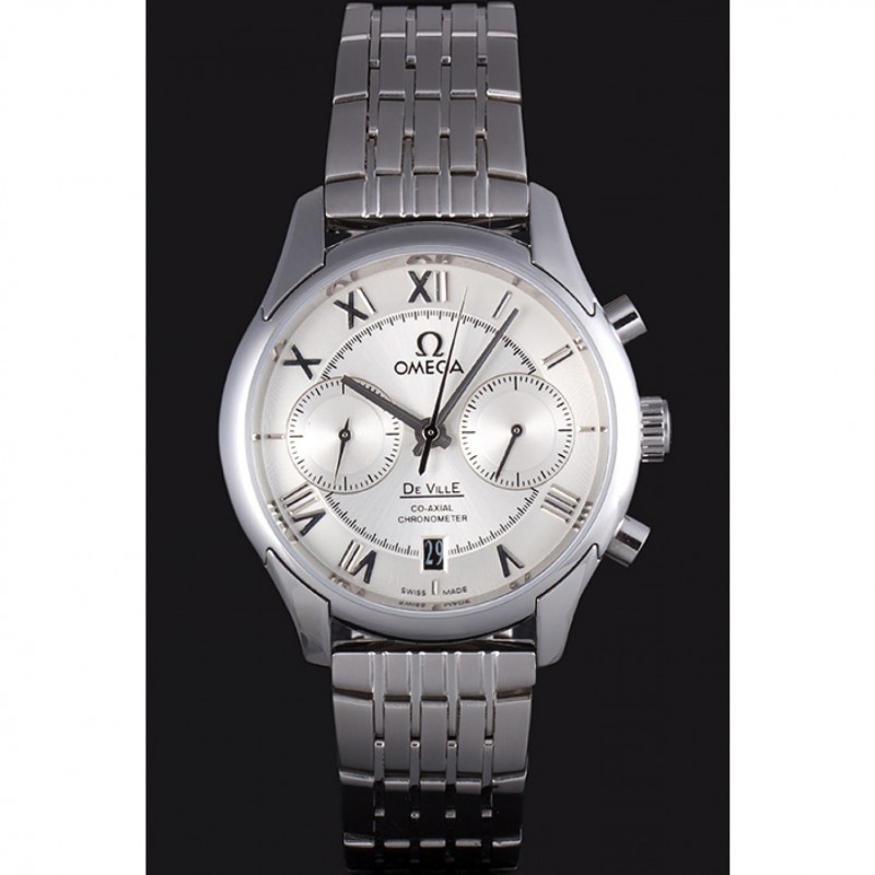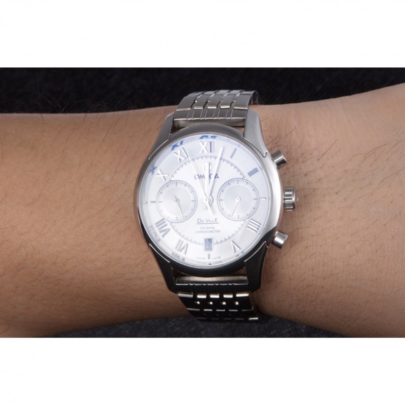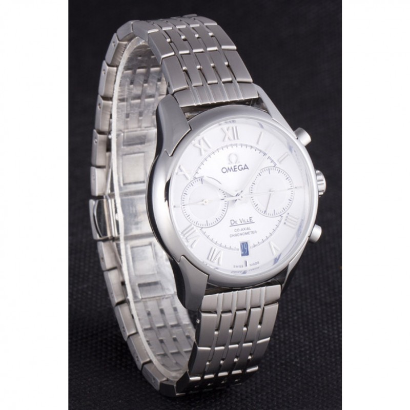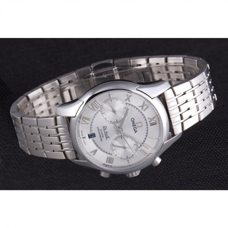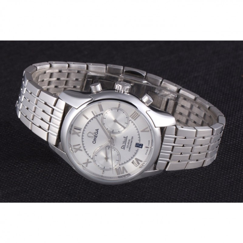 Bracelet:brossé et bracelet à maillons en acier inoxydable poli avec le logo Omega fermoir à bouton-libération gravé