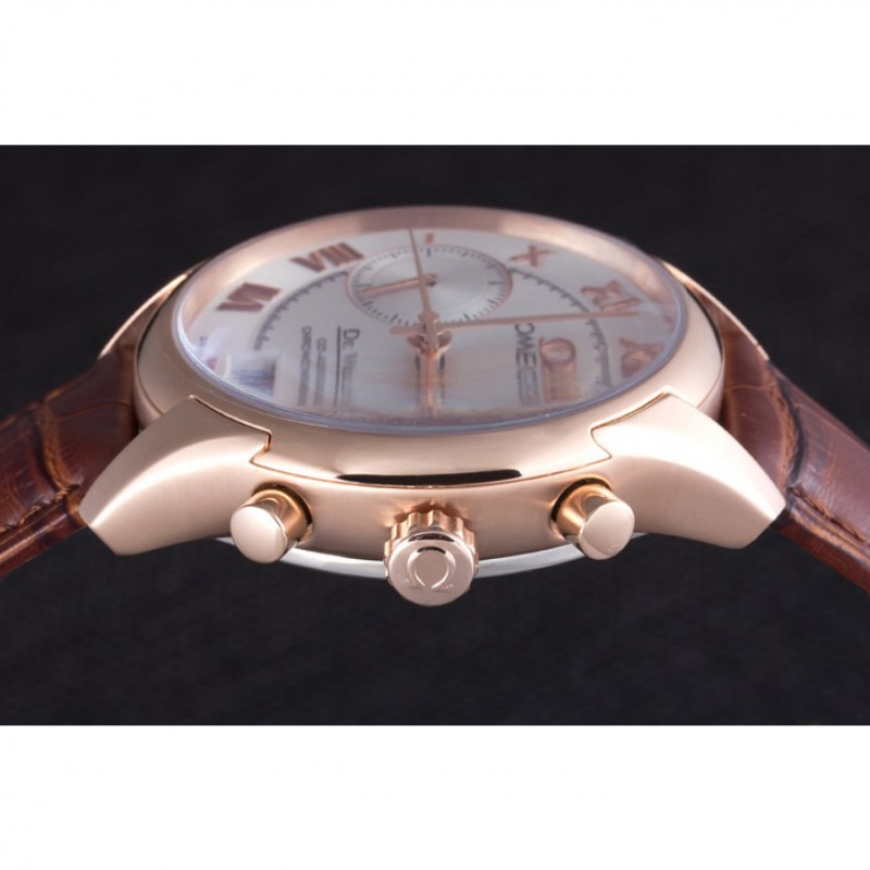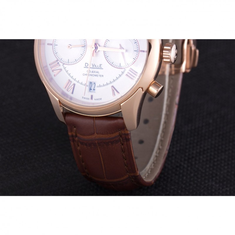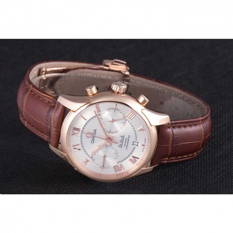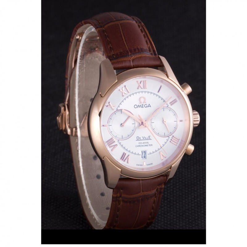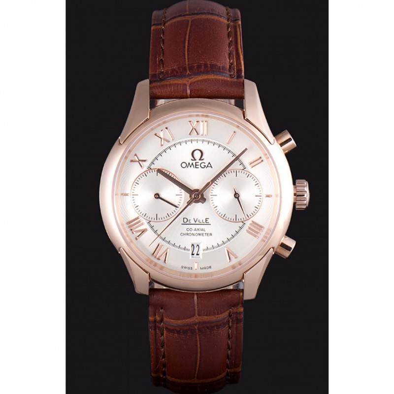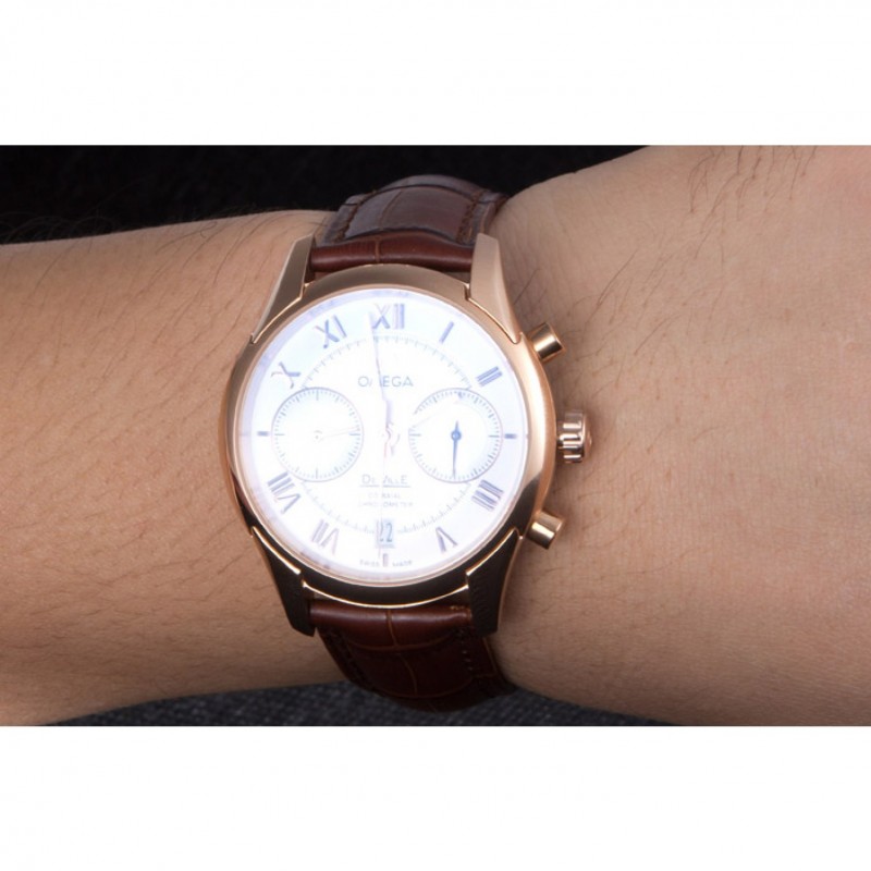 Omega DeVille lunette en or rose avec cadran blanc et bracelet en cuir brun 621570