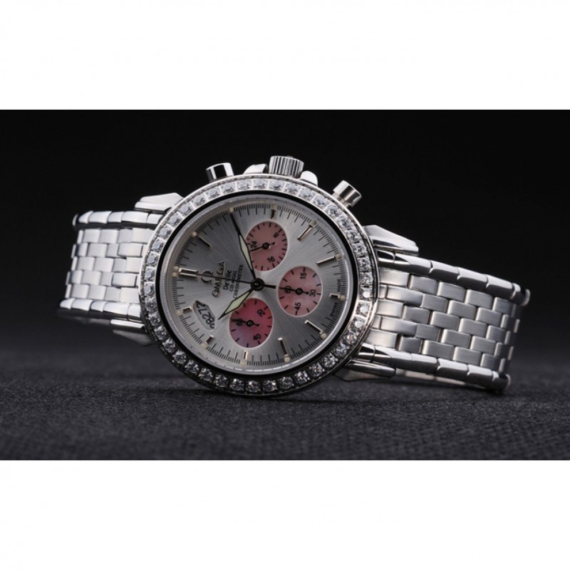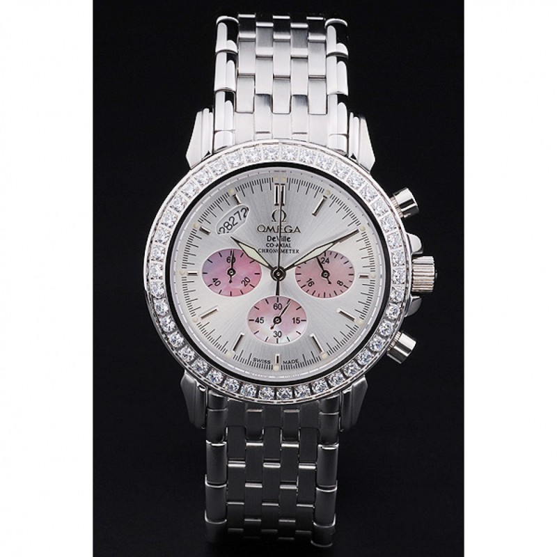 Couronne:couronne en acier inoxydable cutwork poli avec logo Omega et deux couronnes supplémentaires, une de chaque côté de celui-ci