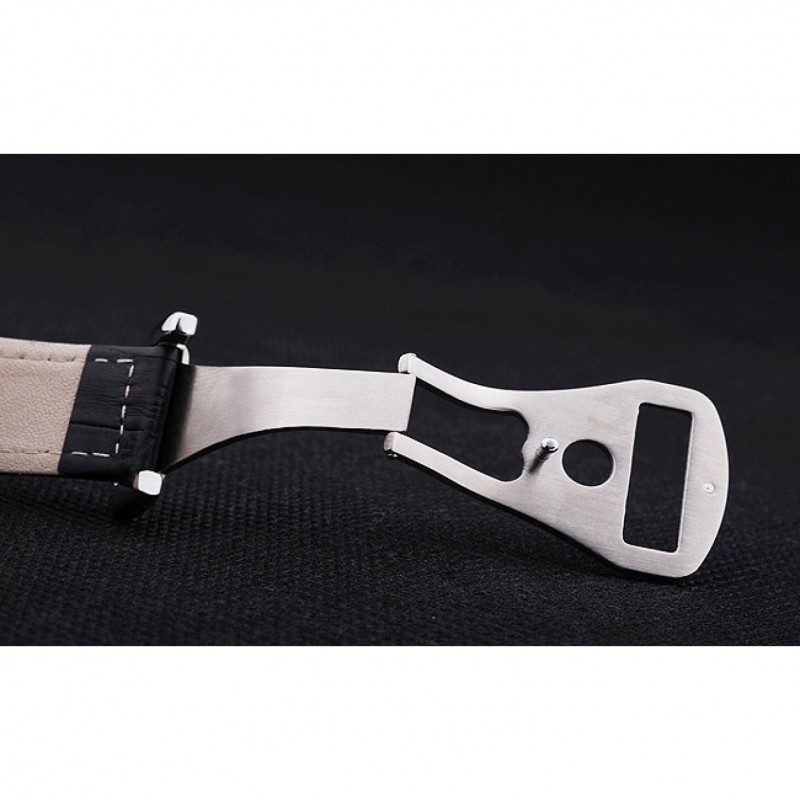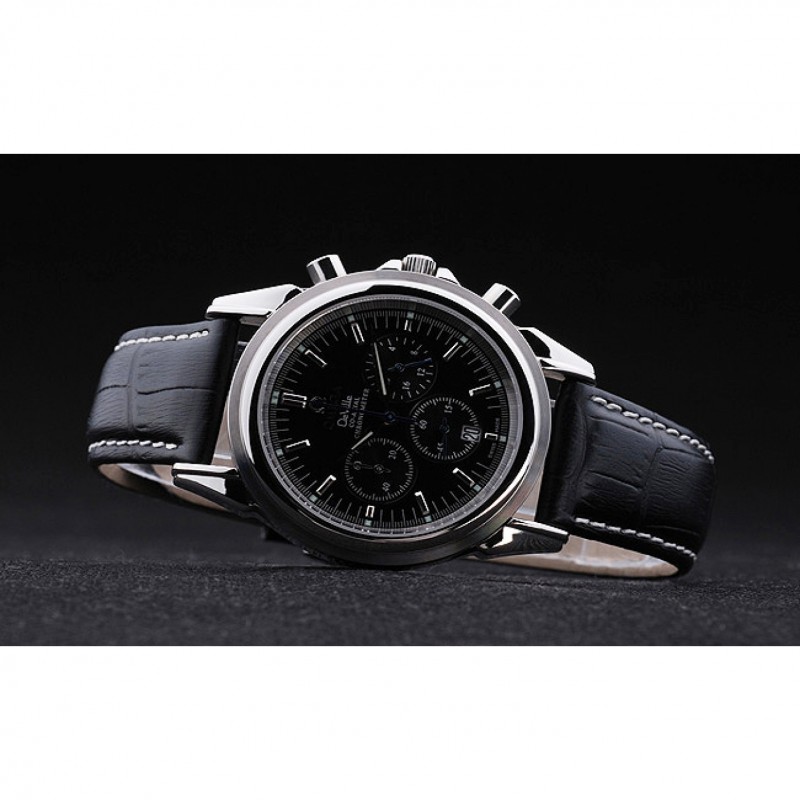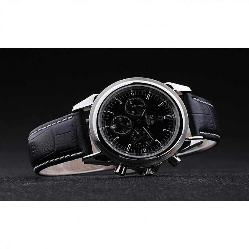Bracelet:Noir bracelet en cuir de crocodile avec coutures blanches et logo Omega gravé fermoir crochet boucle en acier inoxydable