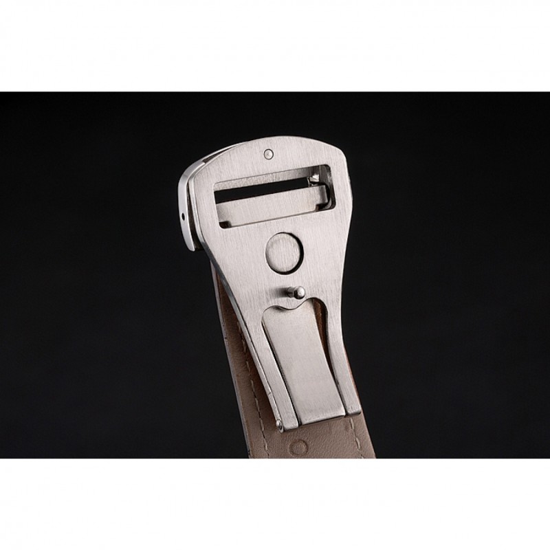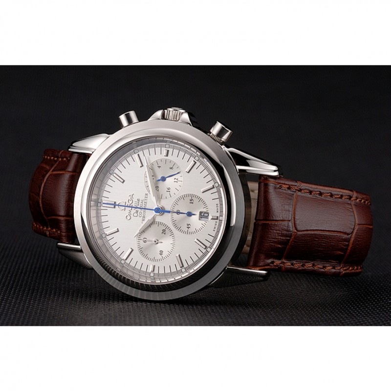Bracelet:Brown bracelet en cuir de crocodile avec coutures blanches et logo Omega gravé fermoir crochet boucle en acier inoxydable
