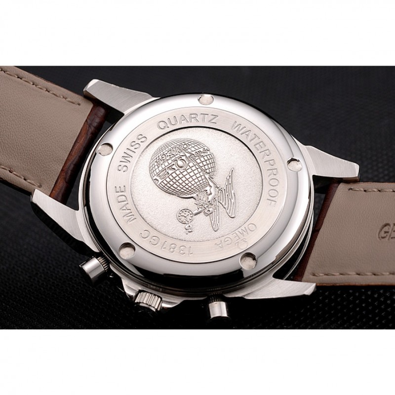Couronne:couronne en acier inoxydable cutwork poli avec le logo Omega et deux couronnes supplémentaires, un de chaque côté de celui-ci