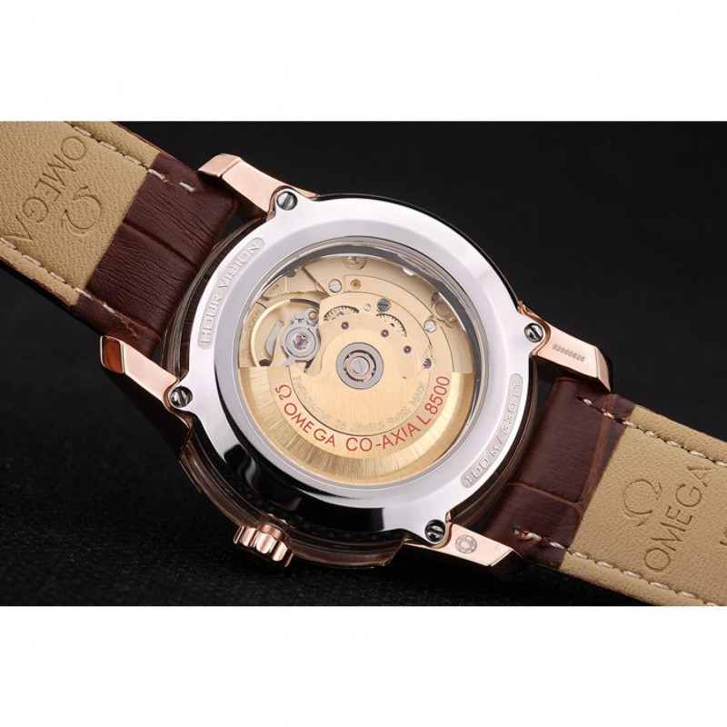 Retour:acier inoxydable poli vissé arrière avec la mécanique révélant transparents centre et gravures Omega