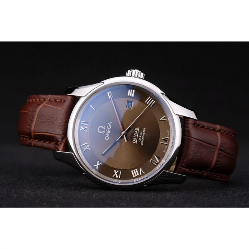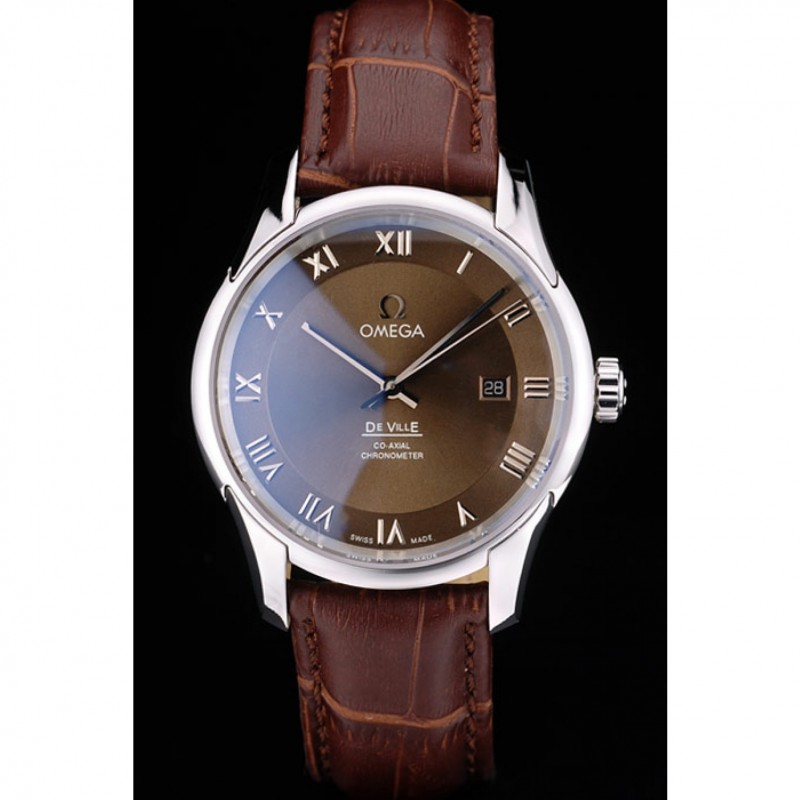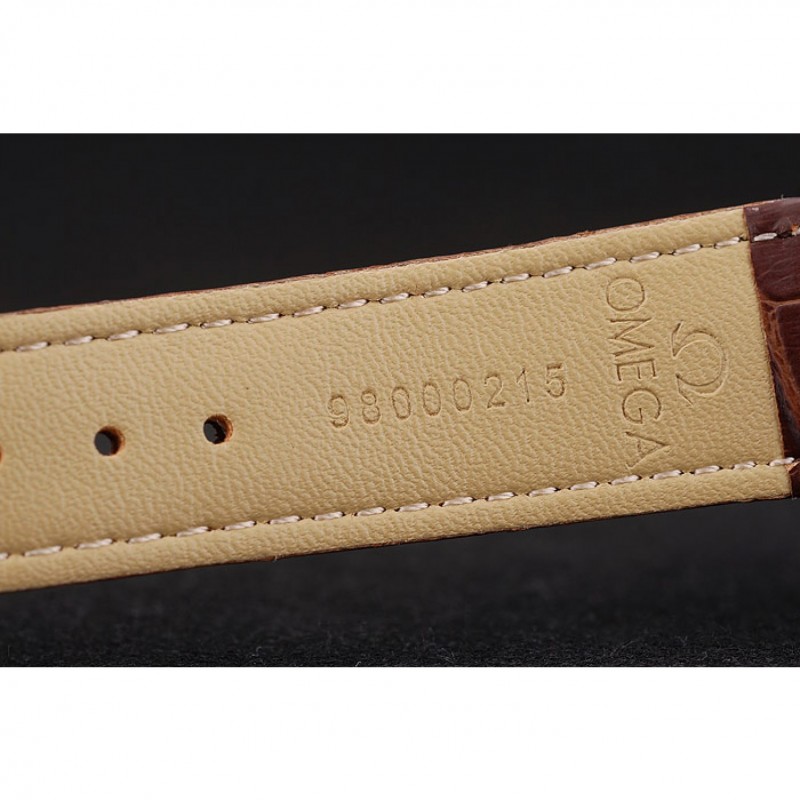 Bracelet:Brown bracelet en cuir de crocodile avec la chaleur en relief Omega, le logo et le code produit et un logo gravé fermoir crochet rabattable en push-presse en acier inoxydable poli