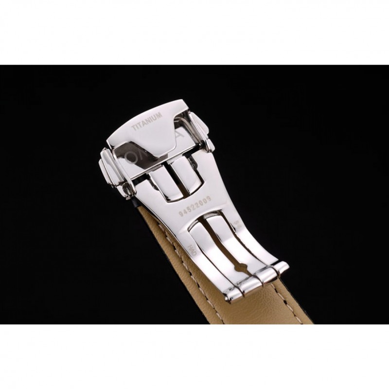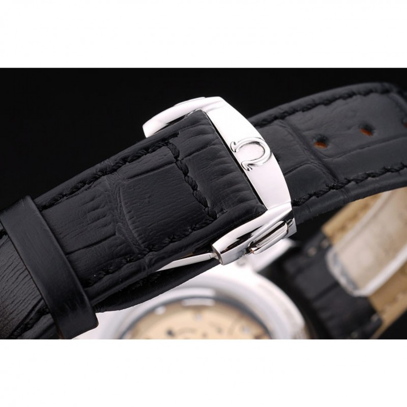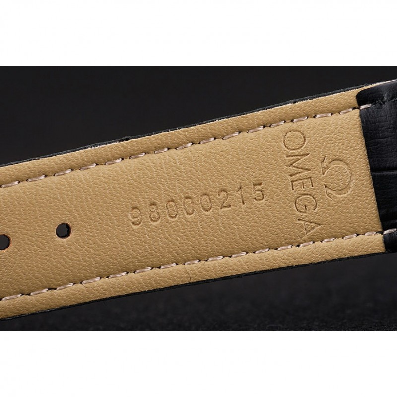 Bracelet:bracelet en cuir de crocodile noir avec chaleur gaufrée Omega, le logo et le code produit et un logo gravé fermoir crochet rabattable en push-presse en acier inoxydable poli