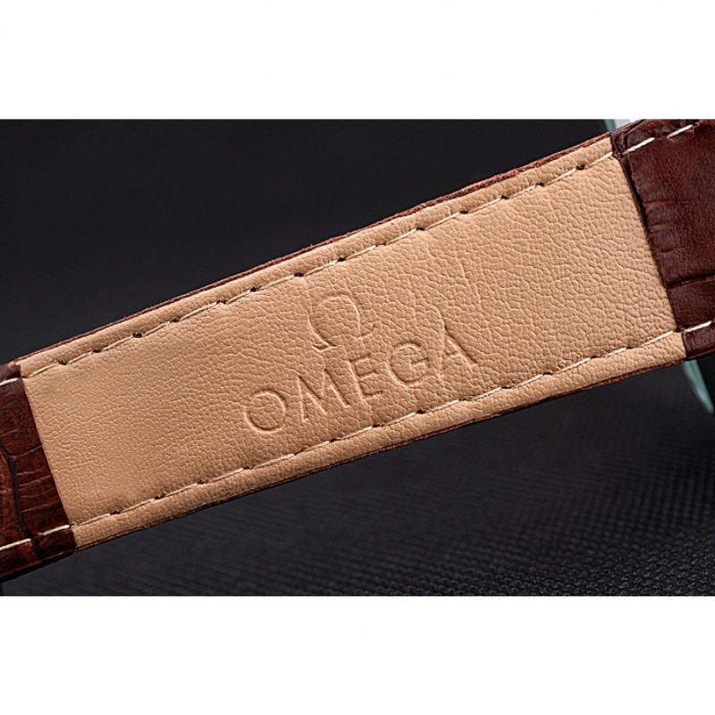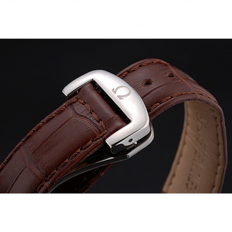 Bracelet:logo et chaleur Omega embossé bracelet crocodile en cuir marron avec le logo gravé fermoir crochet en acier inoxydable brossé