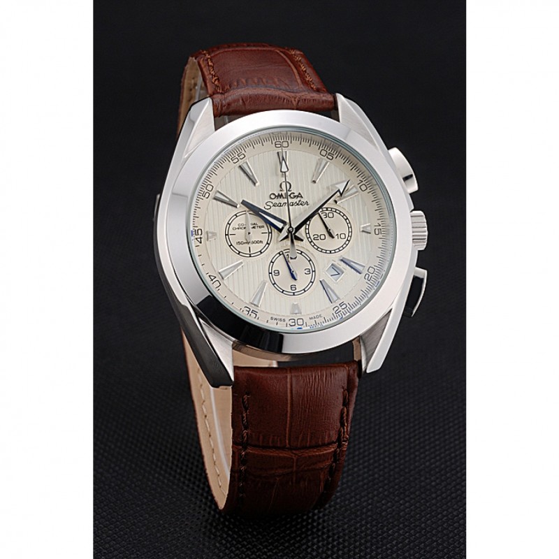 Omega Seamaster Aqua Terra Chronographe Ivoire cadran brun Bracelet en cuir 622529