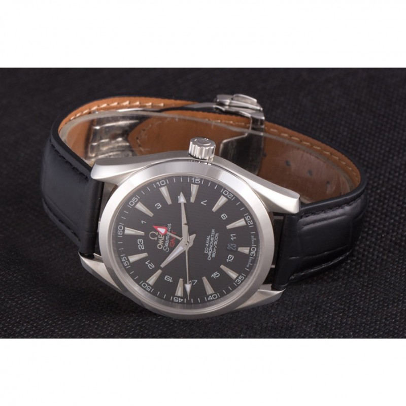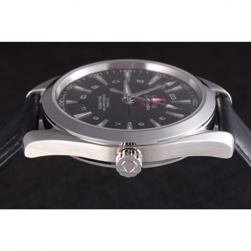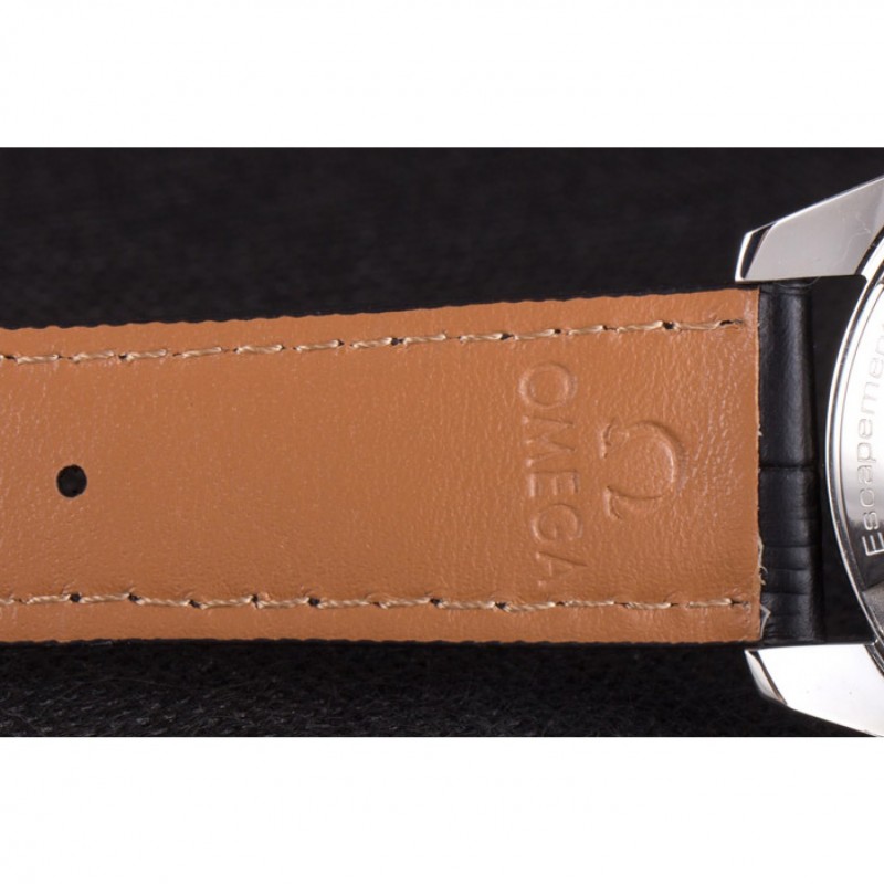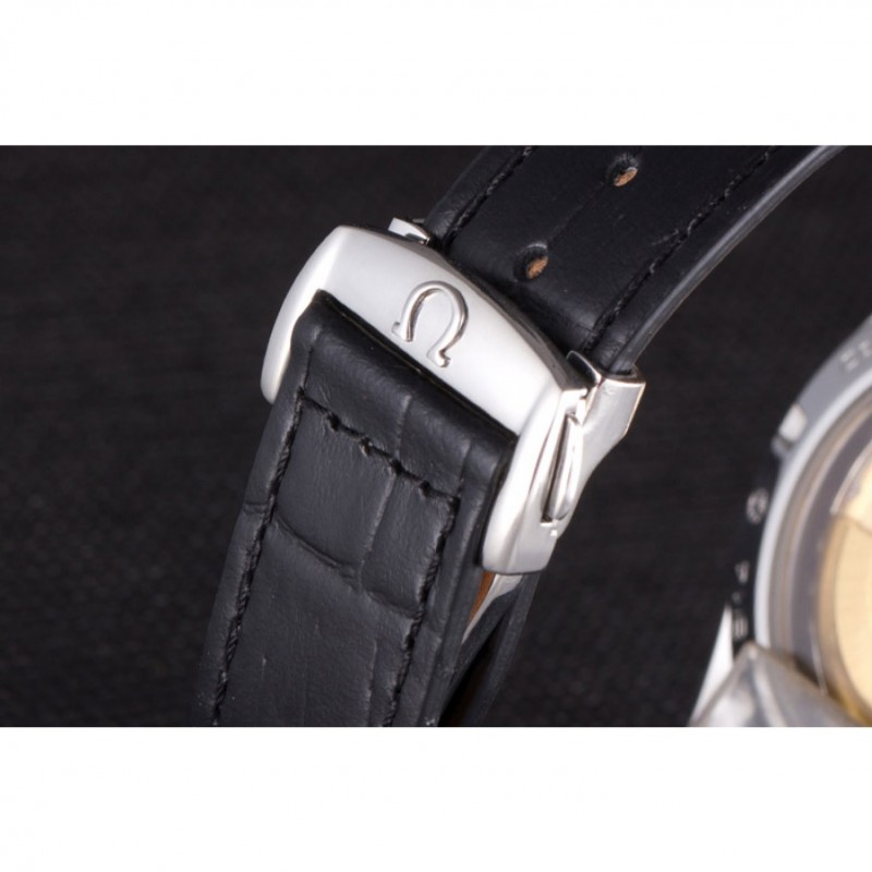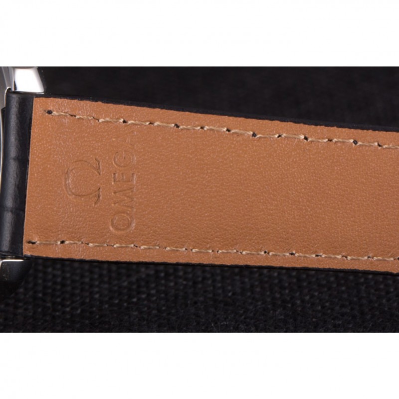 Bracelet:Omega, le logo et le code produit bracelet en cuir de crocodile noir en relief thermique avec logo gravé fermoir crochet bouton-presse en acier inoxydable poli