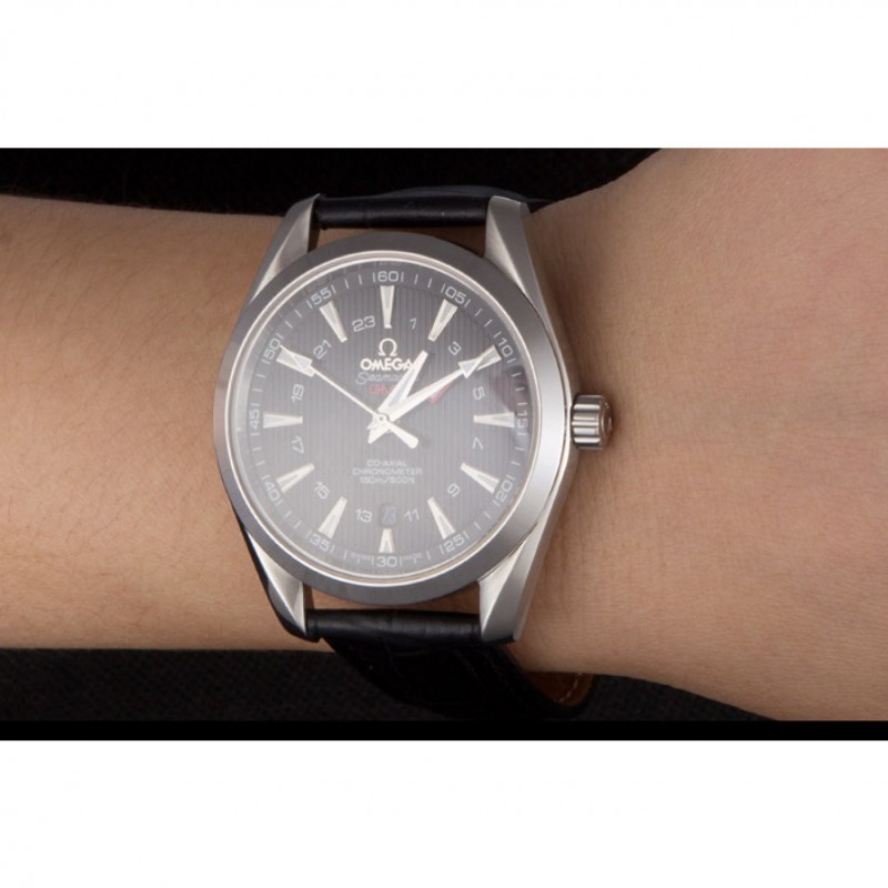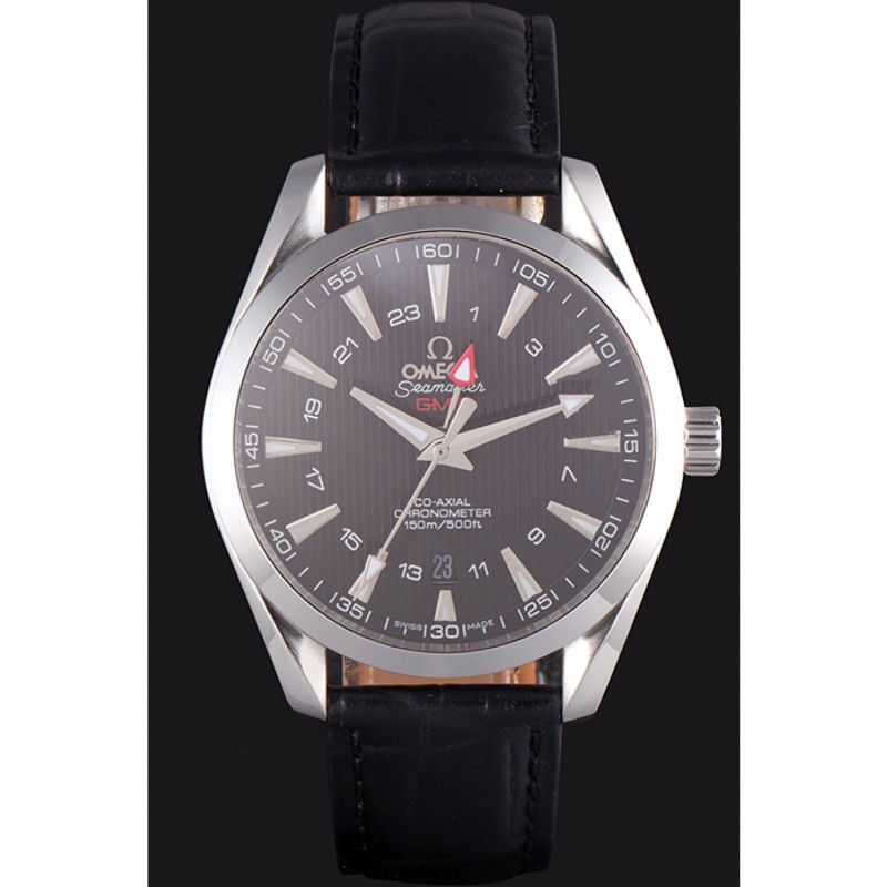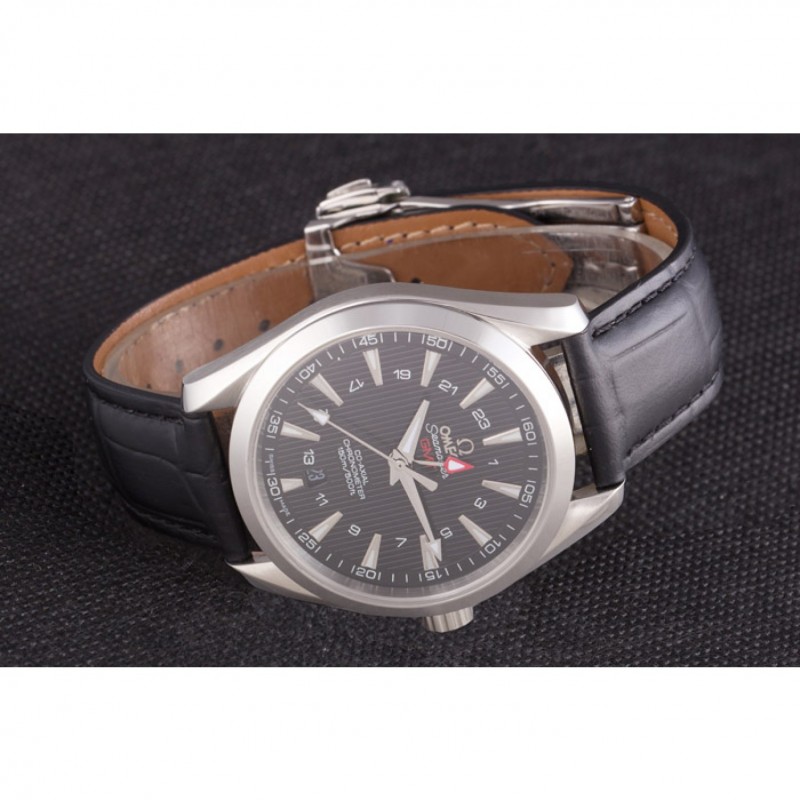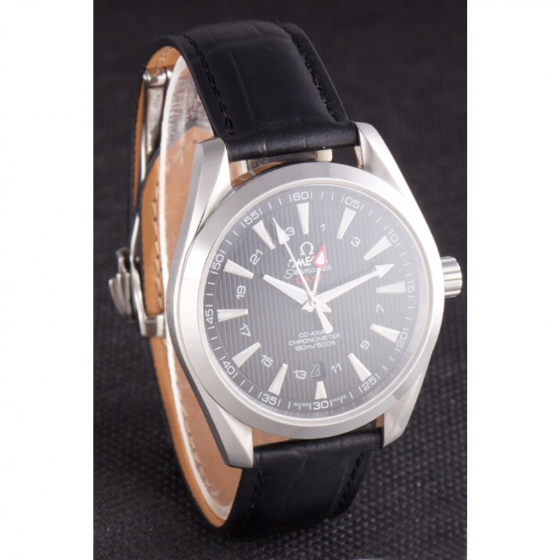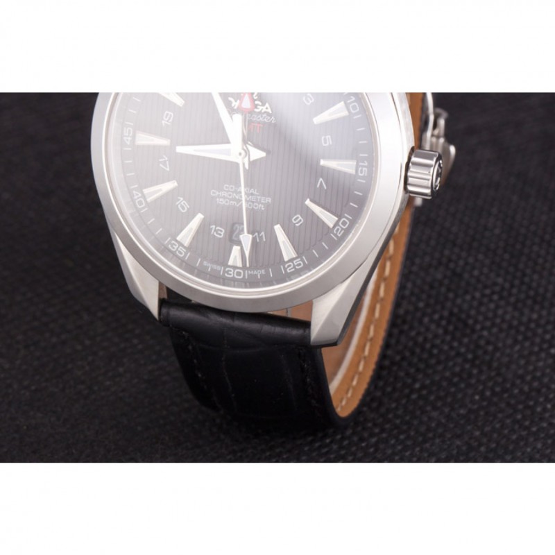 Bracelet:Omega, le logo et le code produit bracelet en cuir de crocodile noir en relief thermique avec logo gravé fermoir crochet bouton-presse en acier inoxydable poli