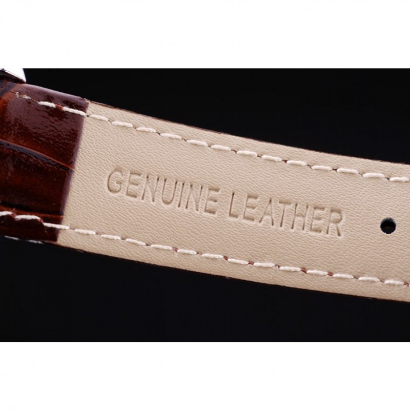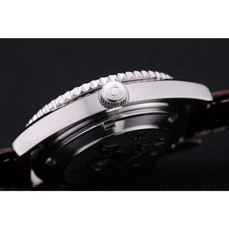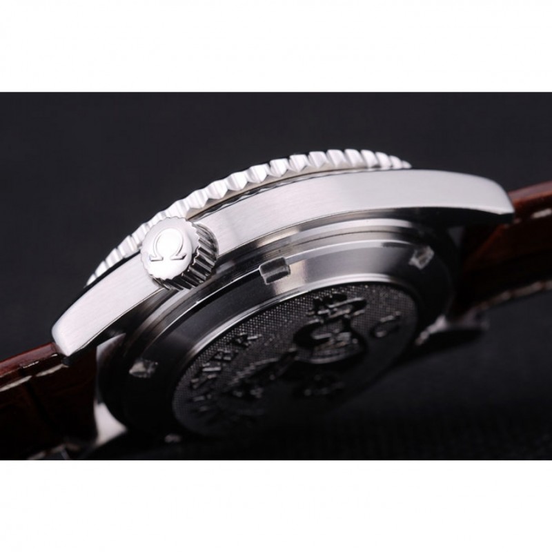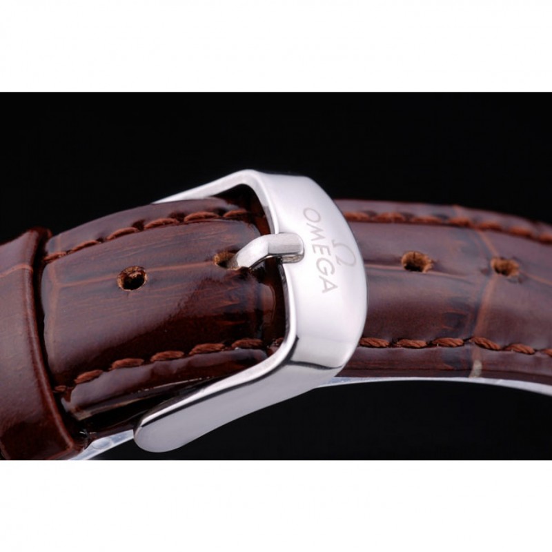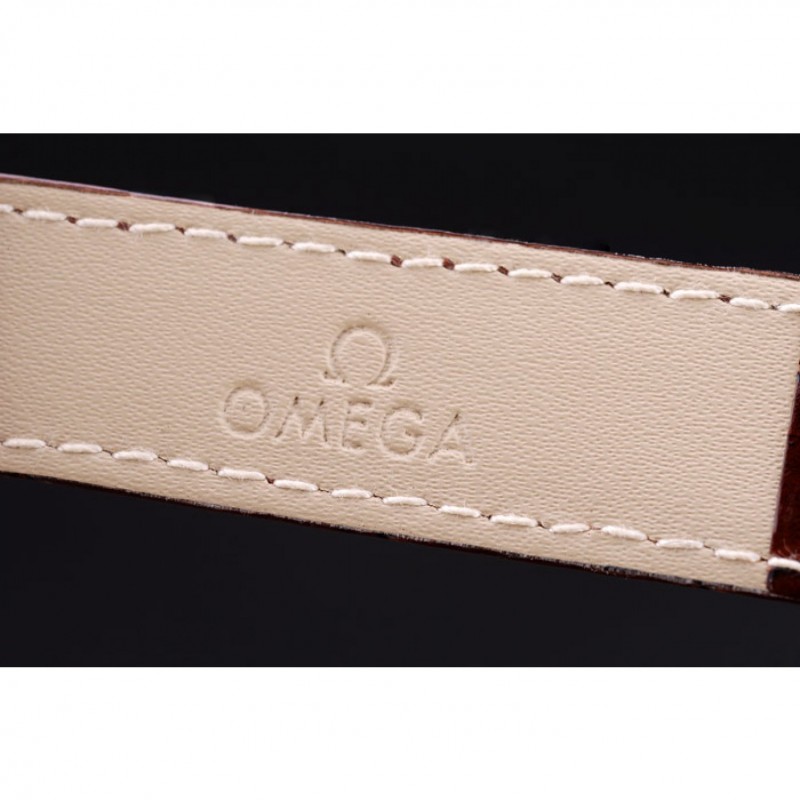 Bracelet:chaleur Omega bracelet en cuir de crocodile de brevet brun gravé Omega inscrit en acier inoxydable poli fermoir crochet-boucle