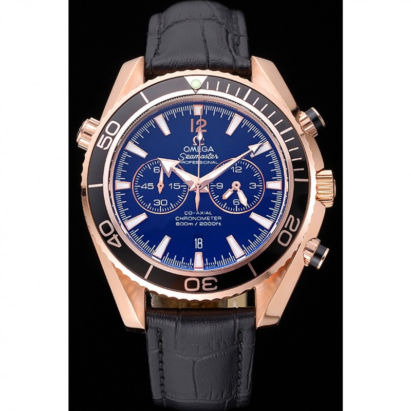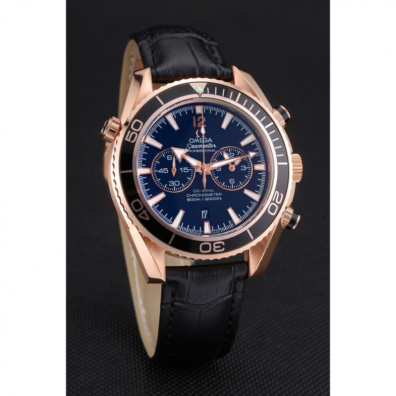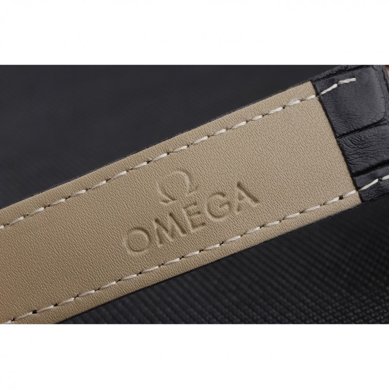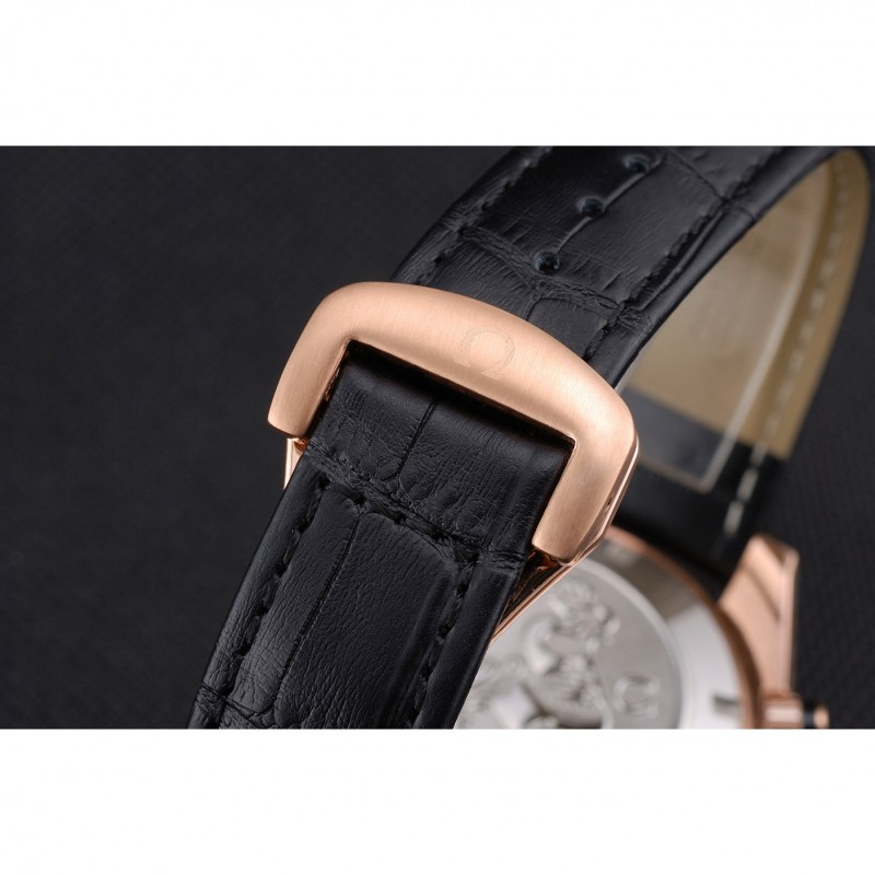 Bracelet:Omega et logo chaleur bracelet en cuir estampé crocodile noir avec oméga logo gravé 18k rose plaqué or fermoir à crochet