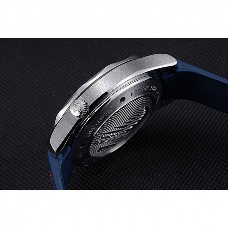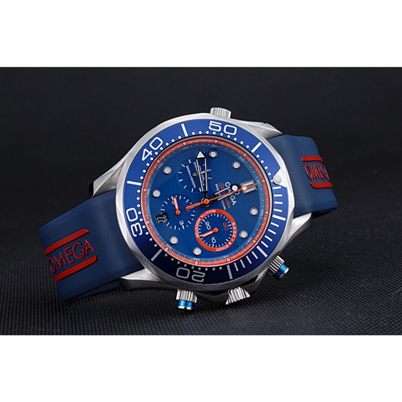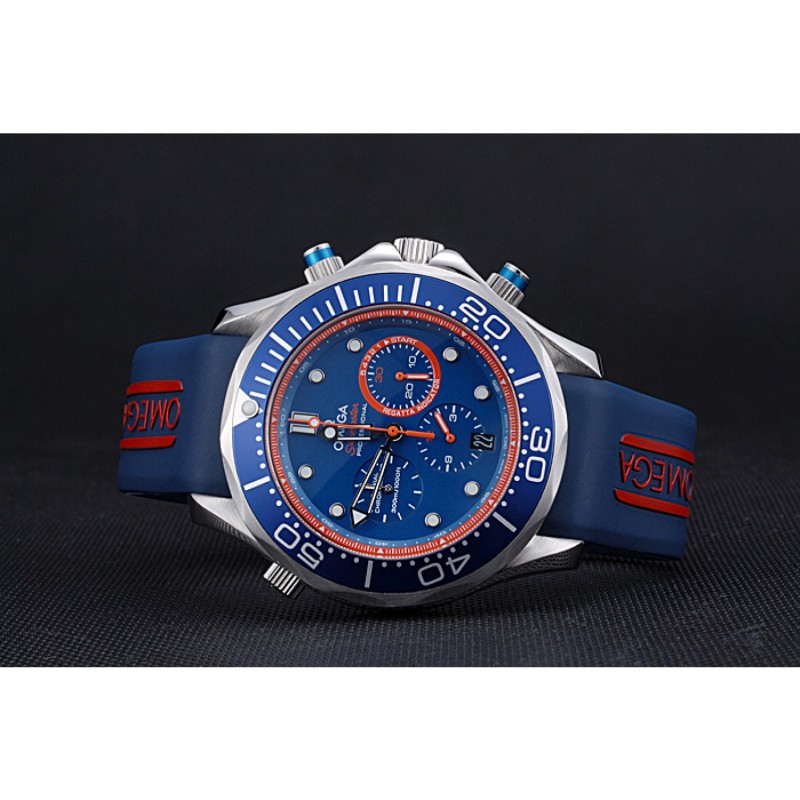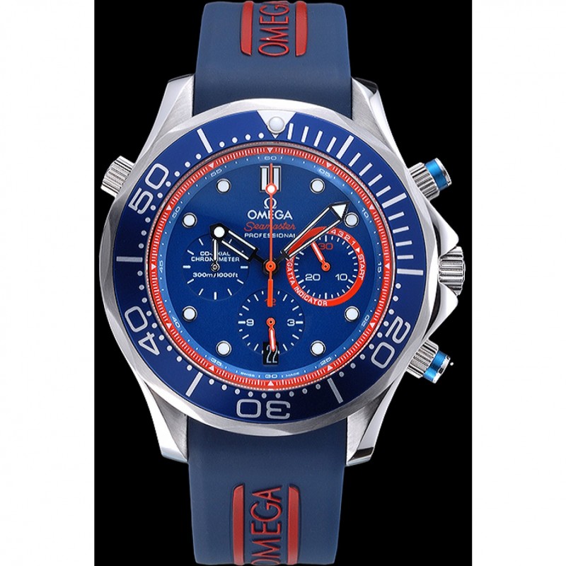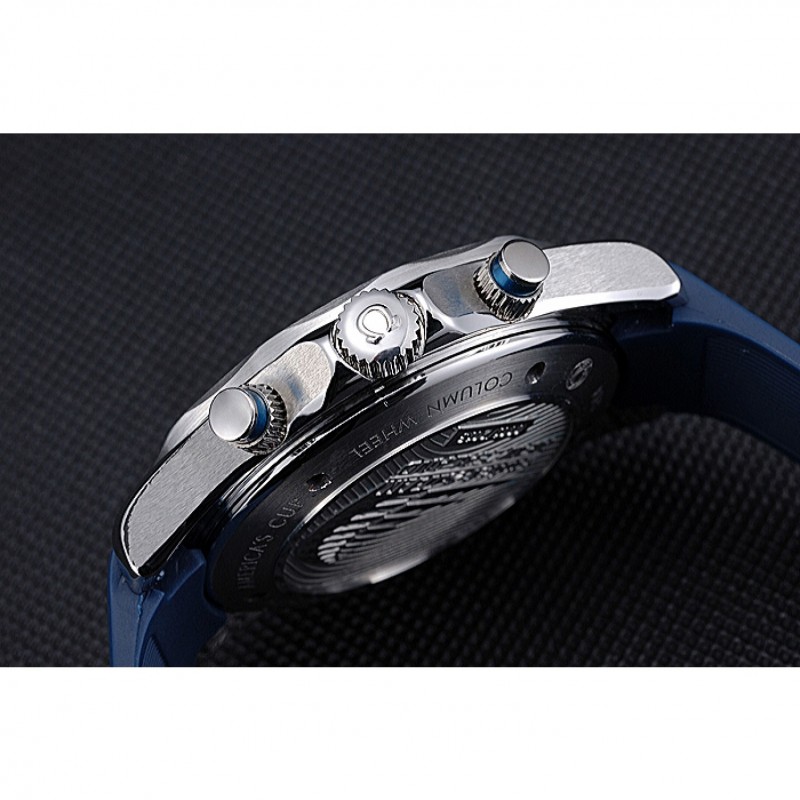 Bracelet:chaleur Omega bracelet en caoutchouc bleu en relief avec logo Omega gravé pli dans fermoir à crochet poussoir à libération acier inoxydable brossé