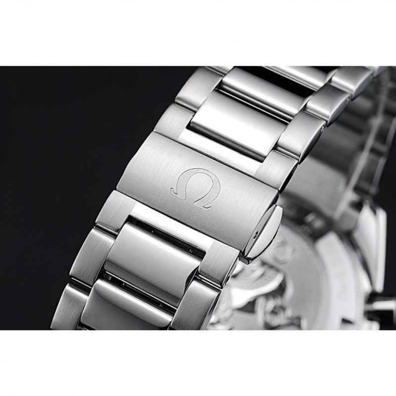 Crown :logo Omega gravé couronne en acier inoxydable cutwork poli avec une couronne de bouton-poussoir rond de chaque côté de celui-ci