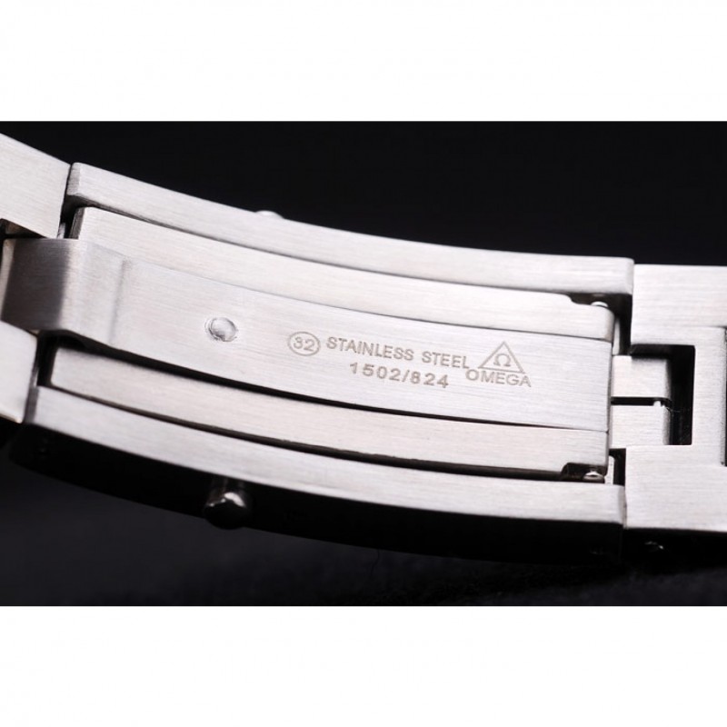 Couronne:couronne en acier inoxydable cutwork poli avec le logo Omega, plus une autre couronne similaire dans le coin supérieur opposé