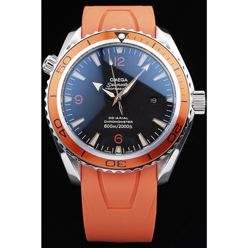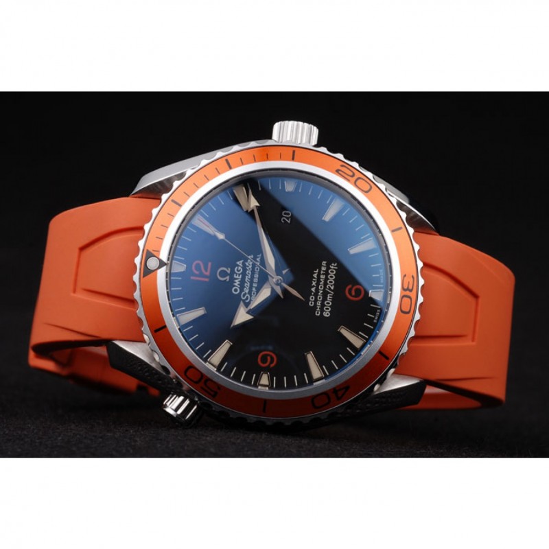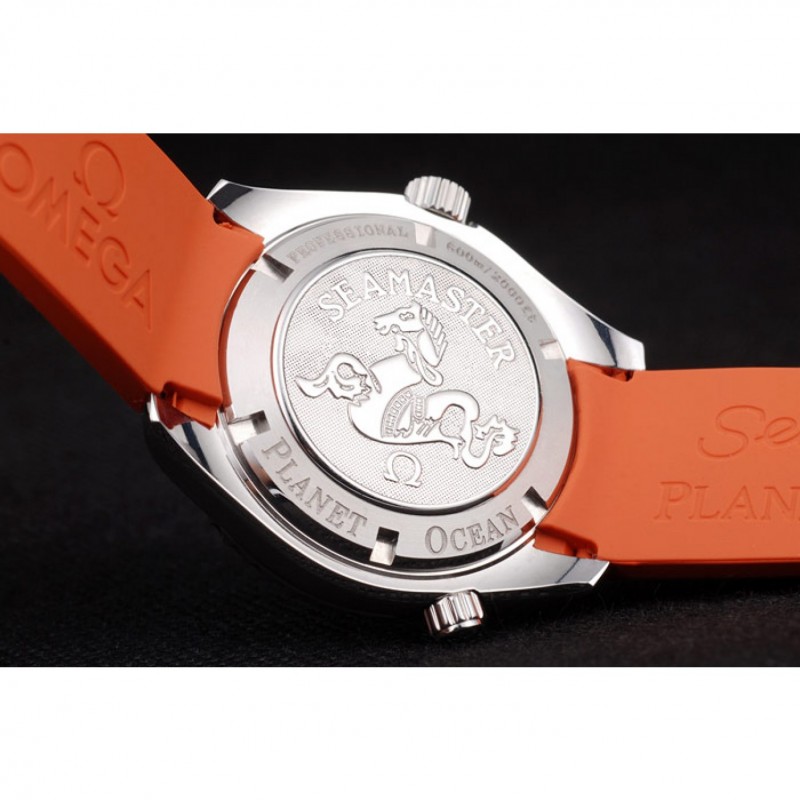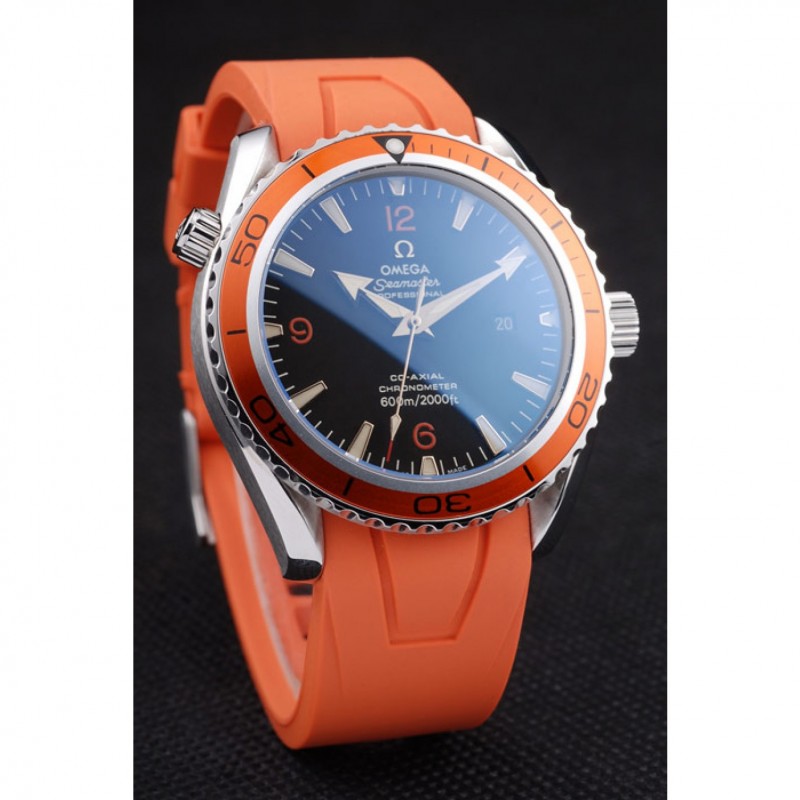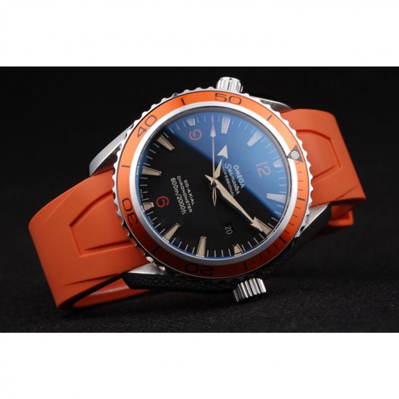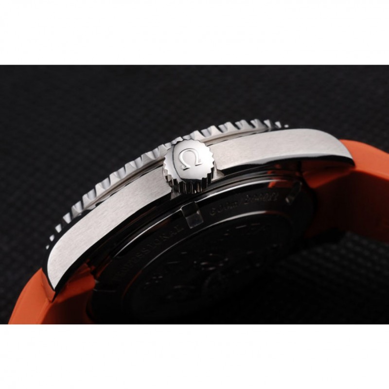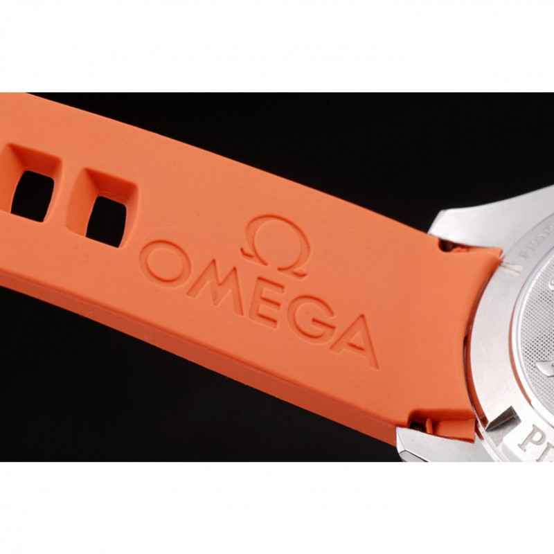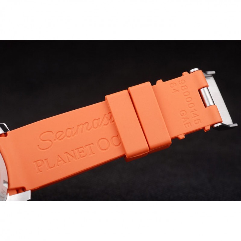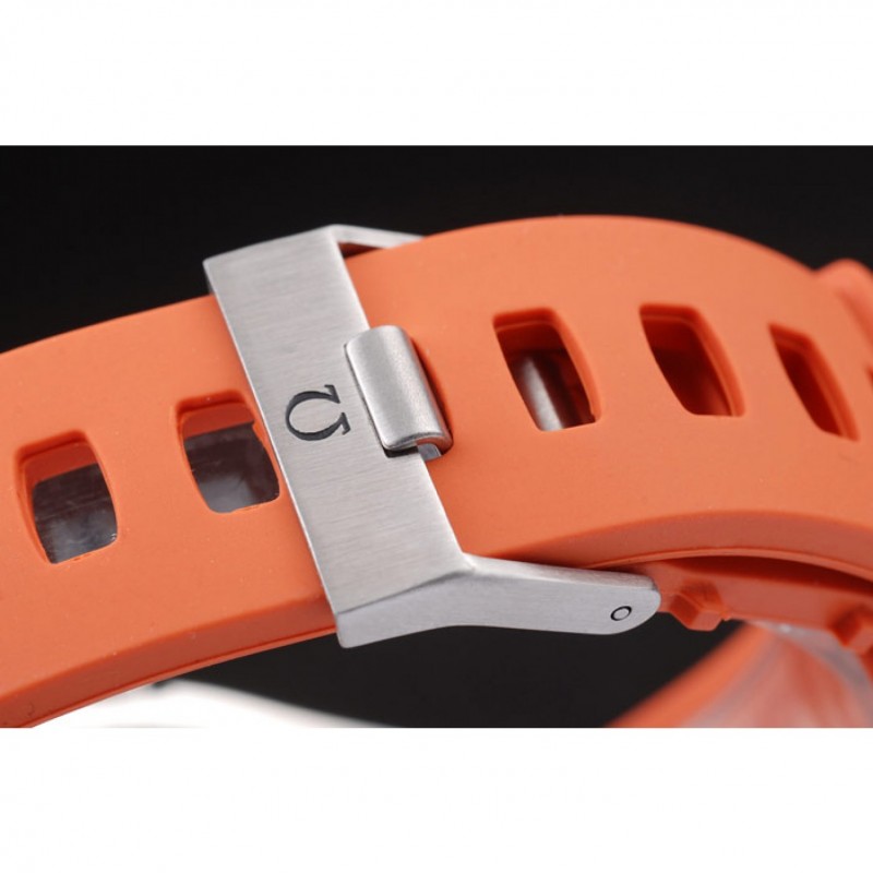 Bracelet:bracelet en caoutchouc orange avec timbre Omega et brossé fermoir crochet-boucle en acier inoxydable avec logo Omega sur le dessus